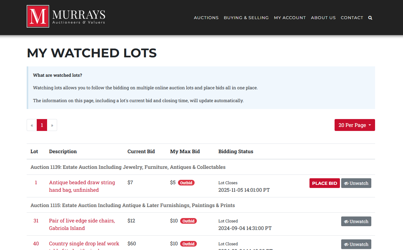 With the combination of our Watched Lots tool changes and the changes to our online catalogues, we hope it makes it easier to follow along with and participate in all of our auctions.