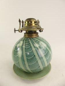 judy weeden art pottery oil lamp, ht 7"