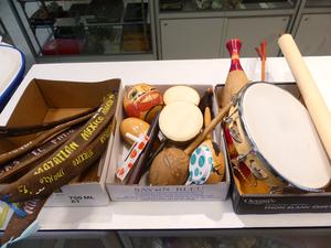 lot of musical instruments and decorative items