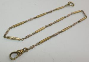 Antique 14K yellow and white gold fancy link watch chain, 8.0 grams, 13"
