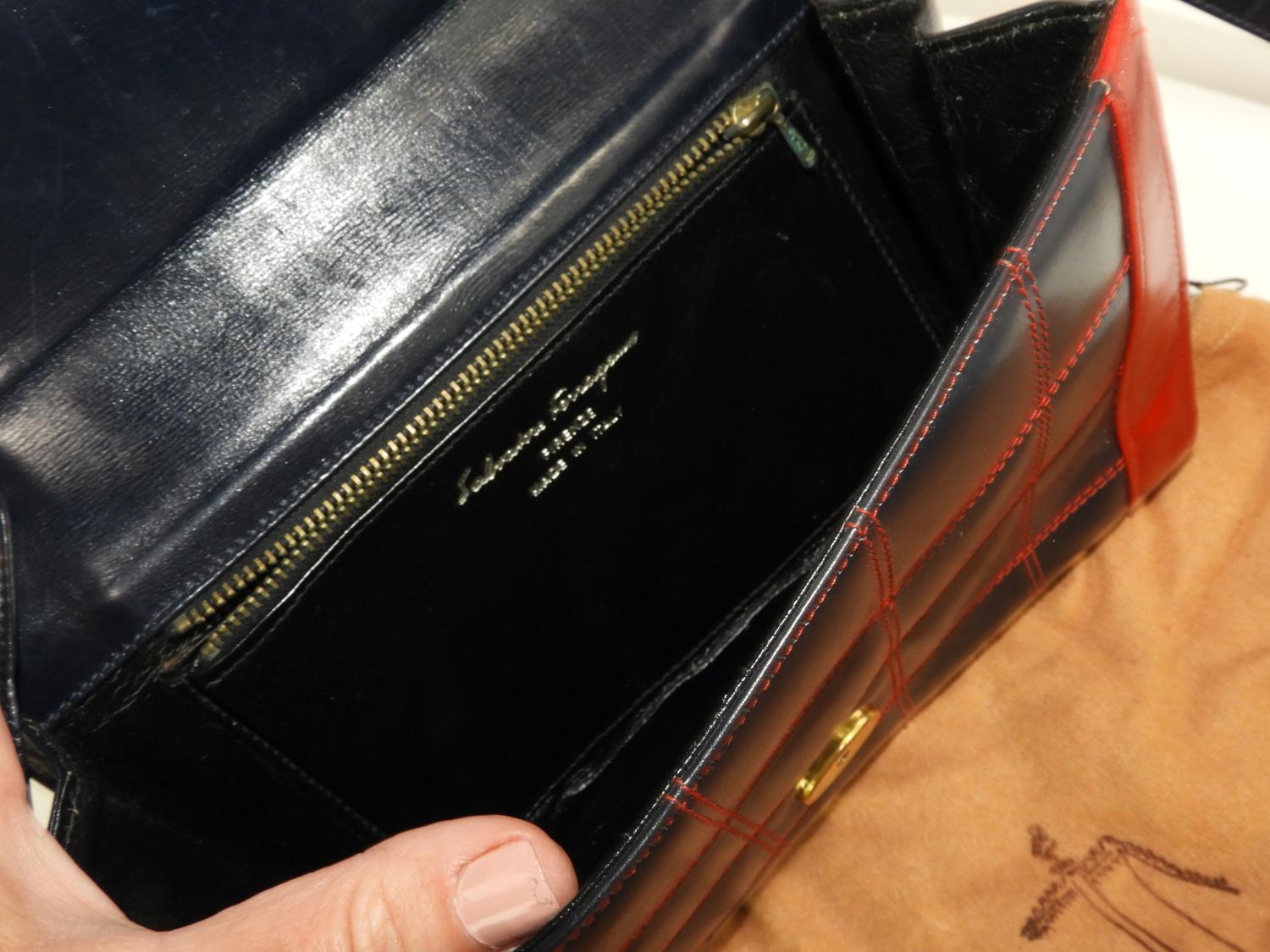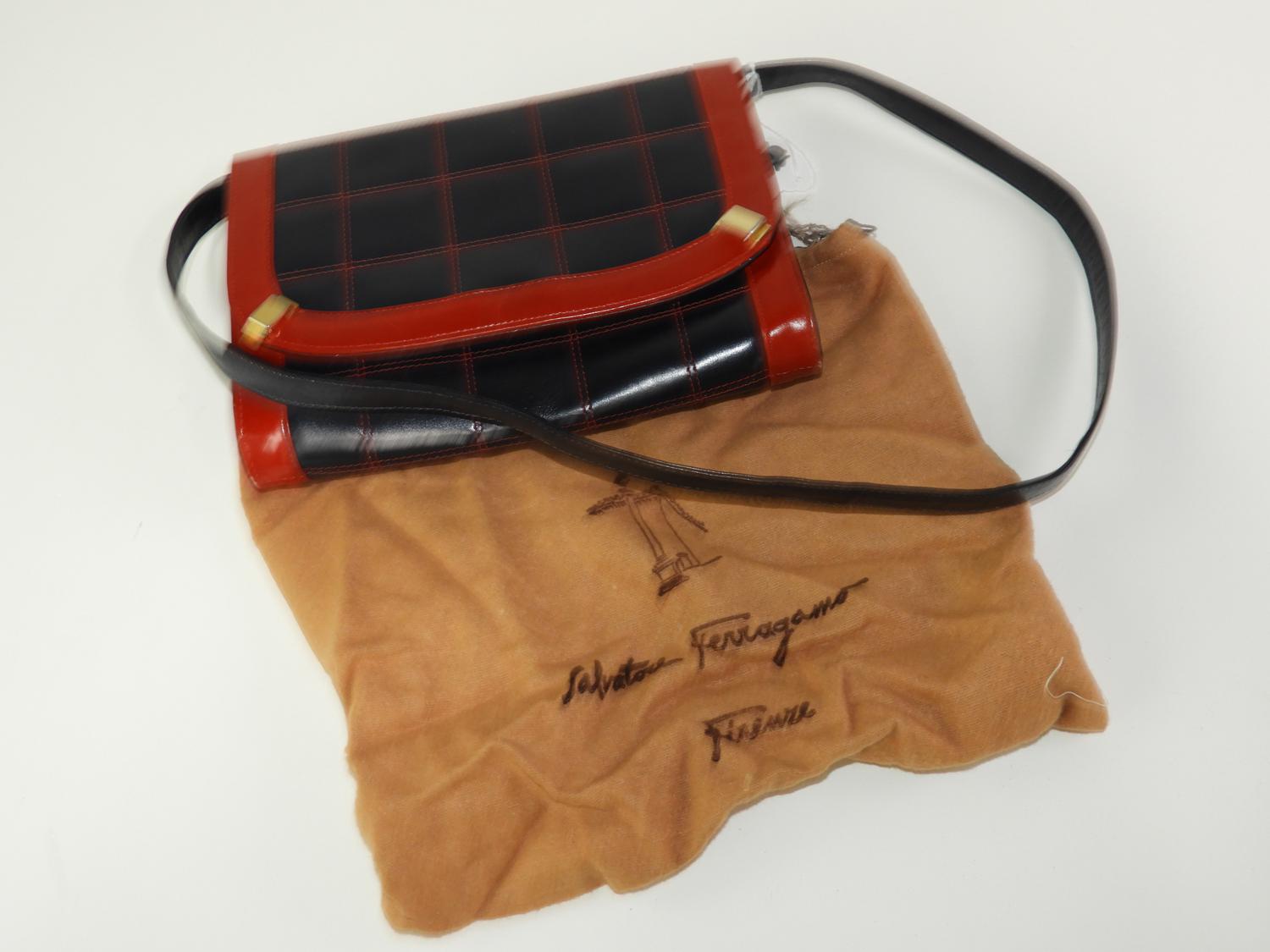 vintage ferragamo leather shoulder purse, 9" x 6 1/2"