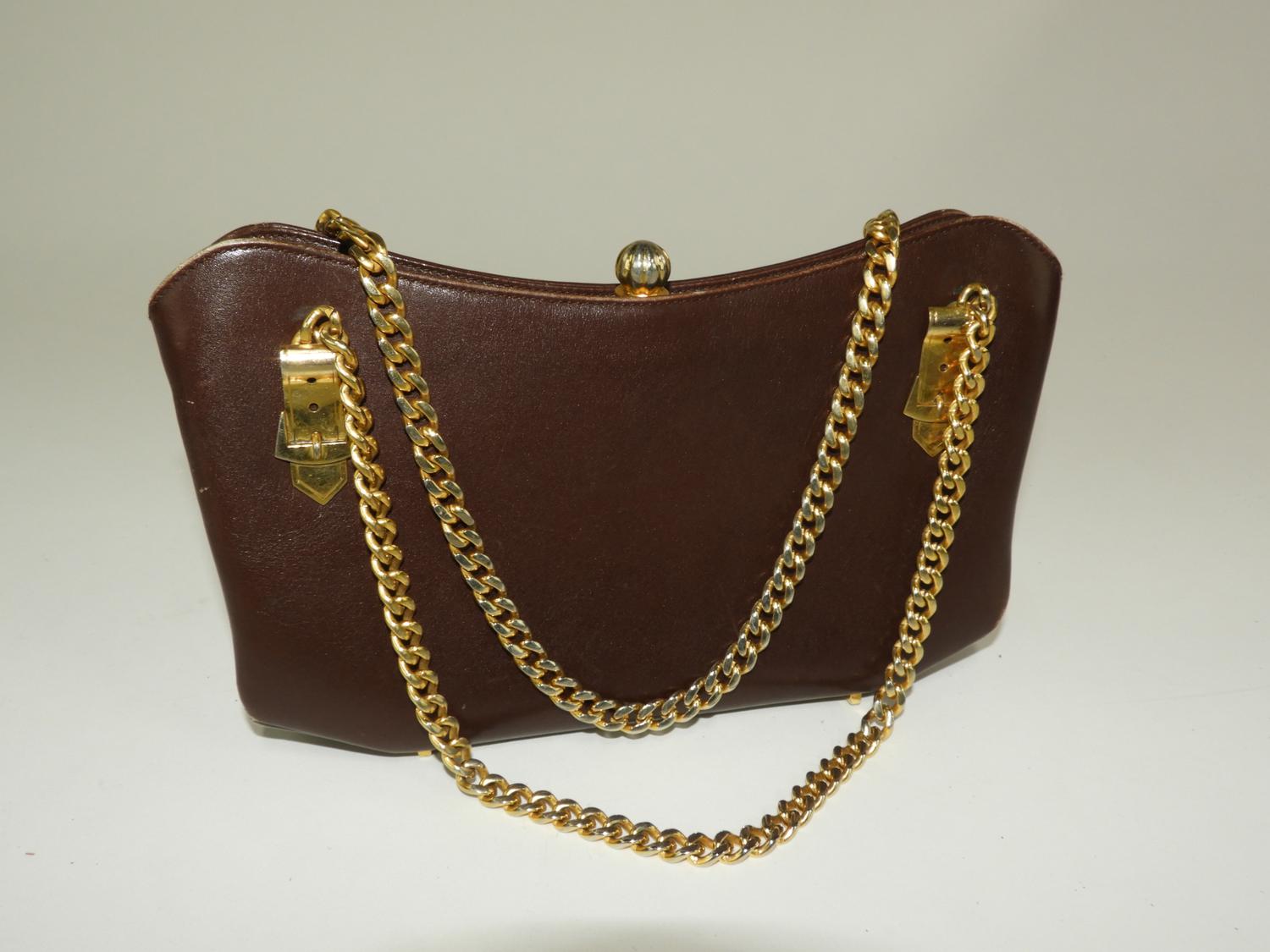 vintage italian brown leather buckle evening purse, 9 x 5 1/2"