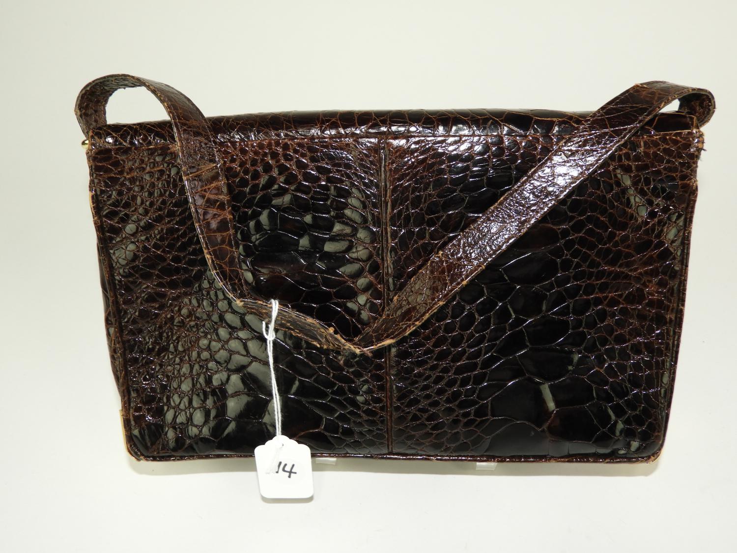 vintage brown creeds crocodile purse, 10 1/2" x 7"