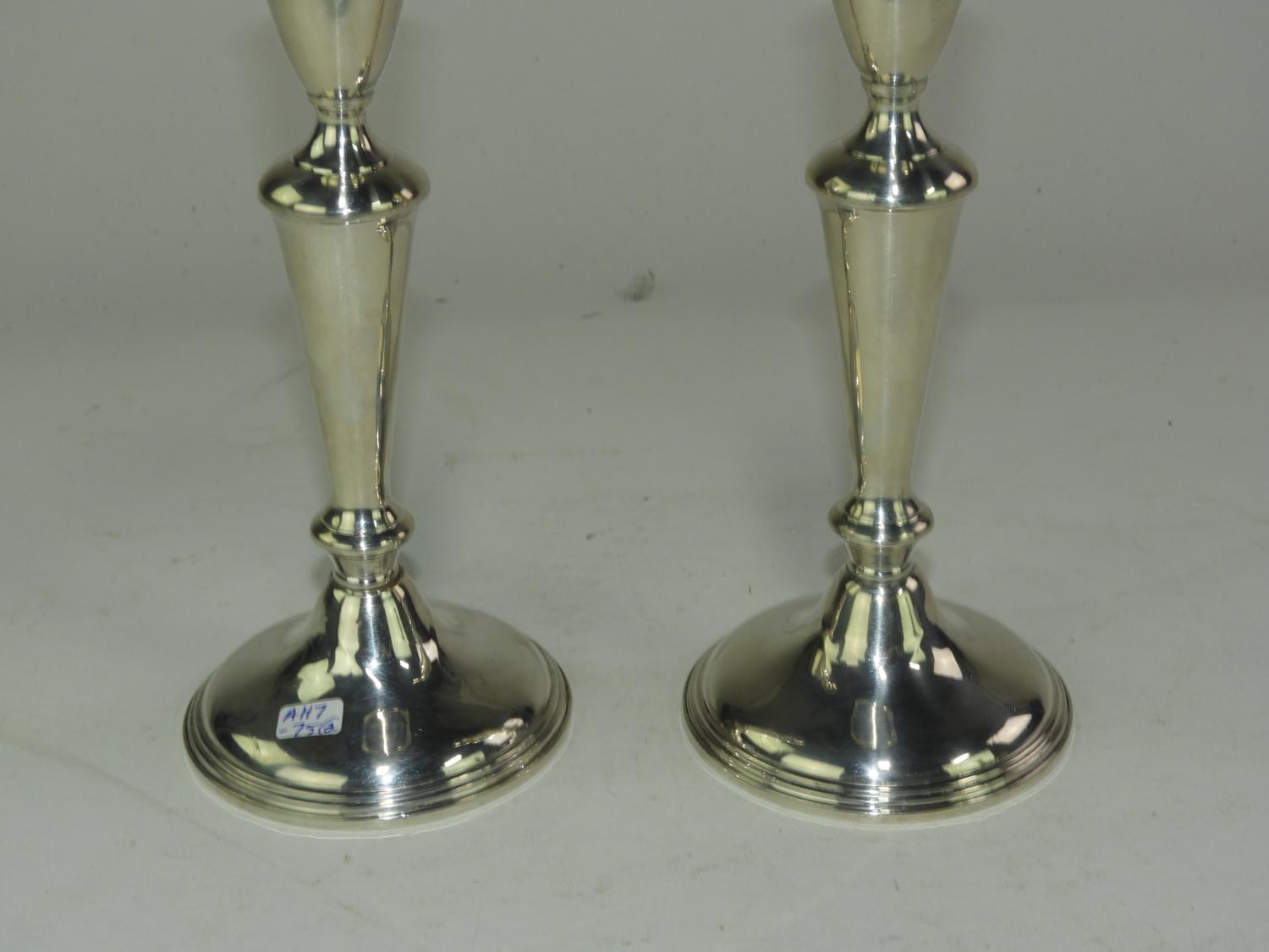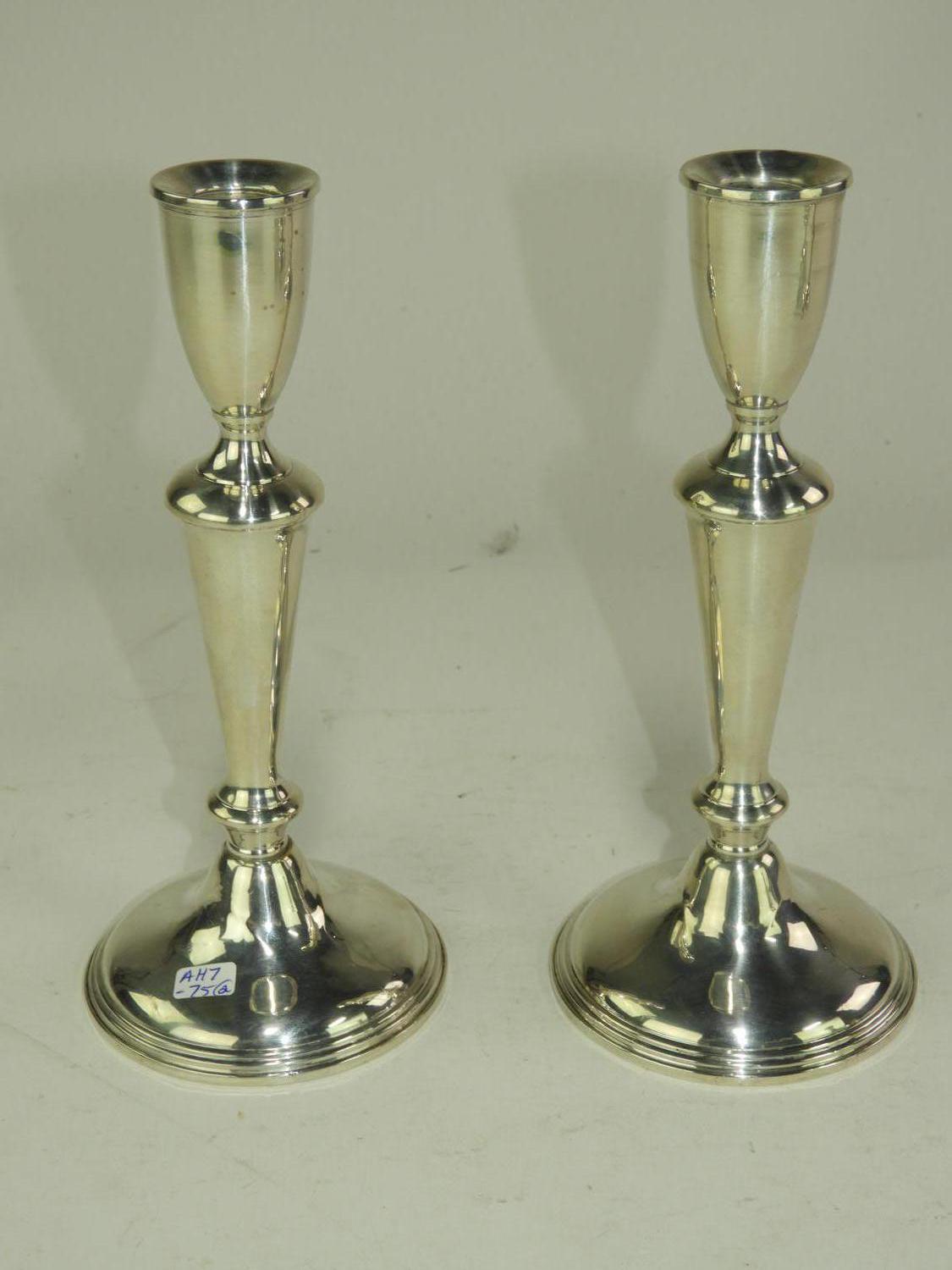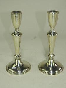 pair of weighted sterling silver candlesticks, by lunt, ht 8 1/2"