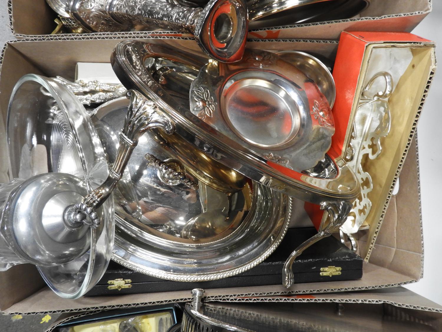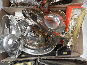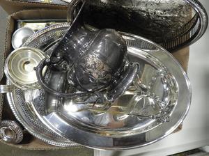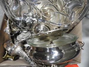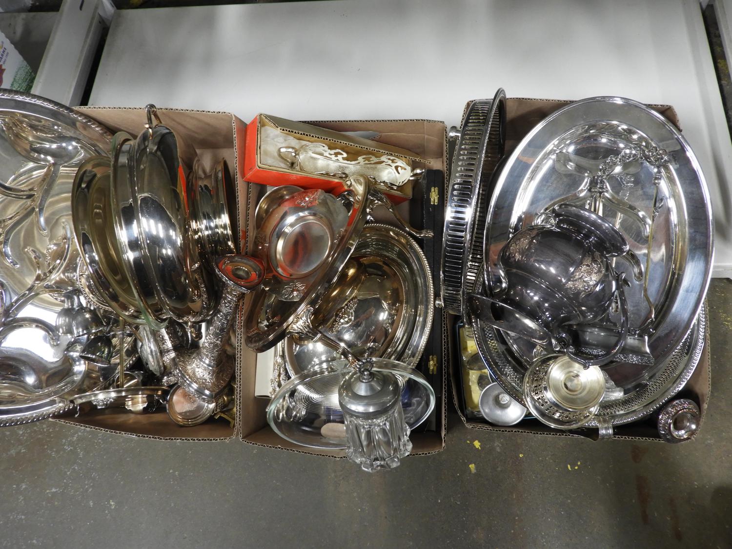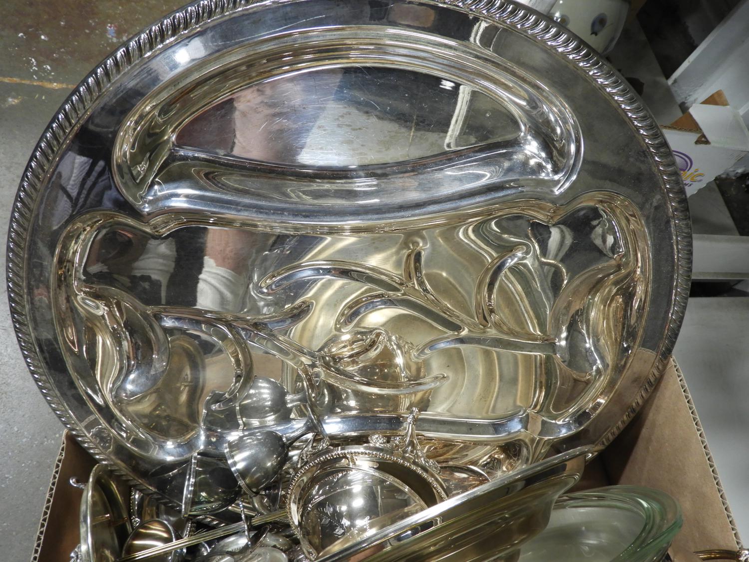 large lot of silver plate serving items