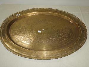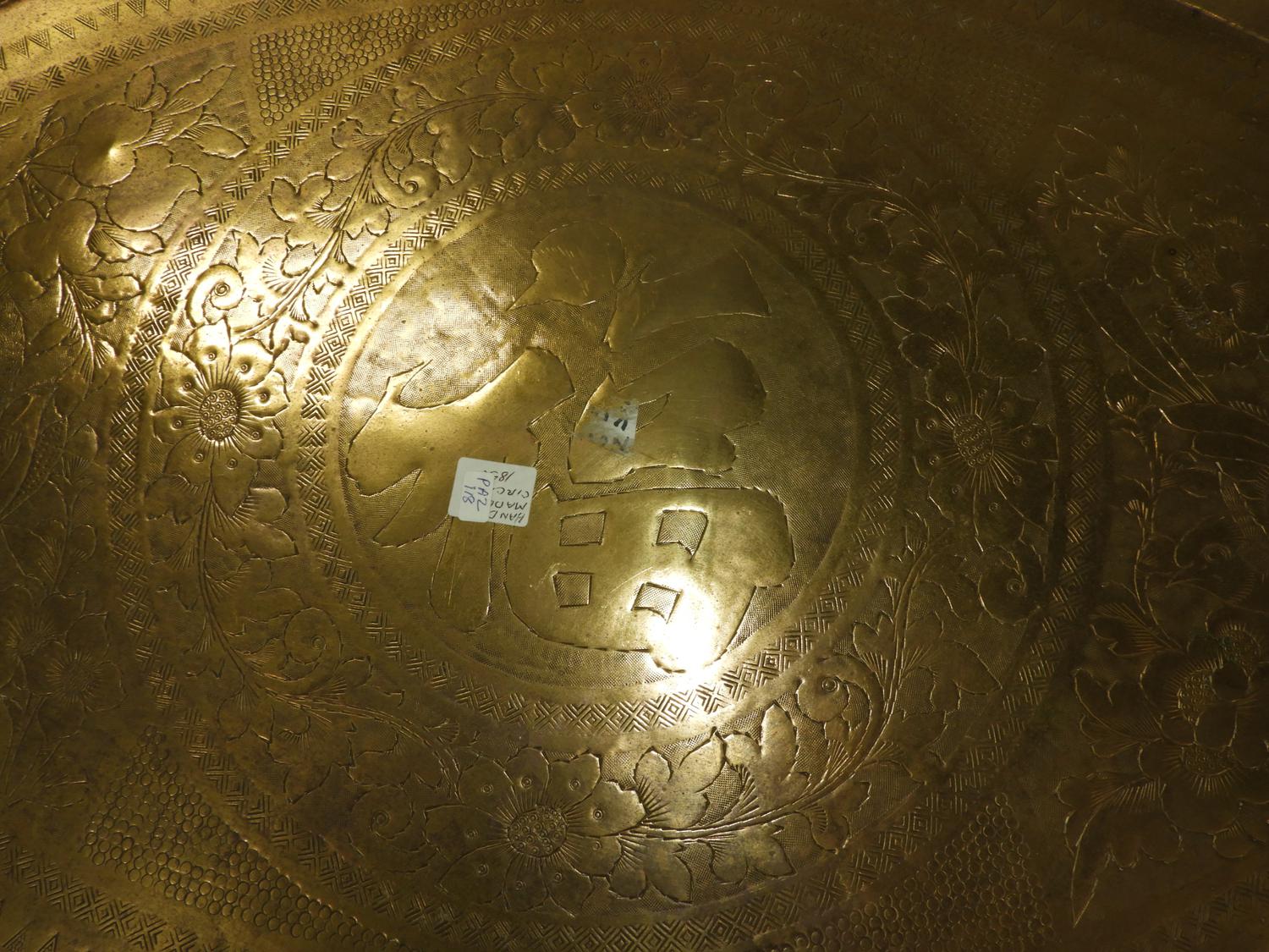 large asian brass tray, 30" x 21 1/2"