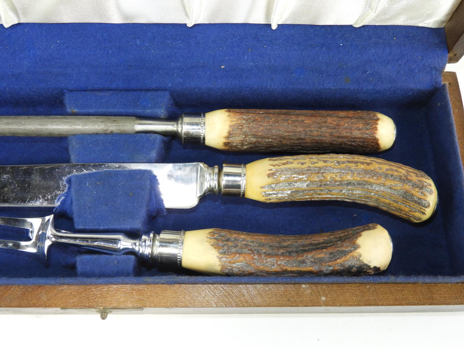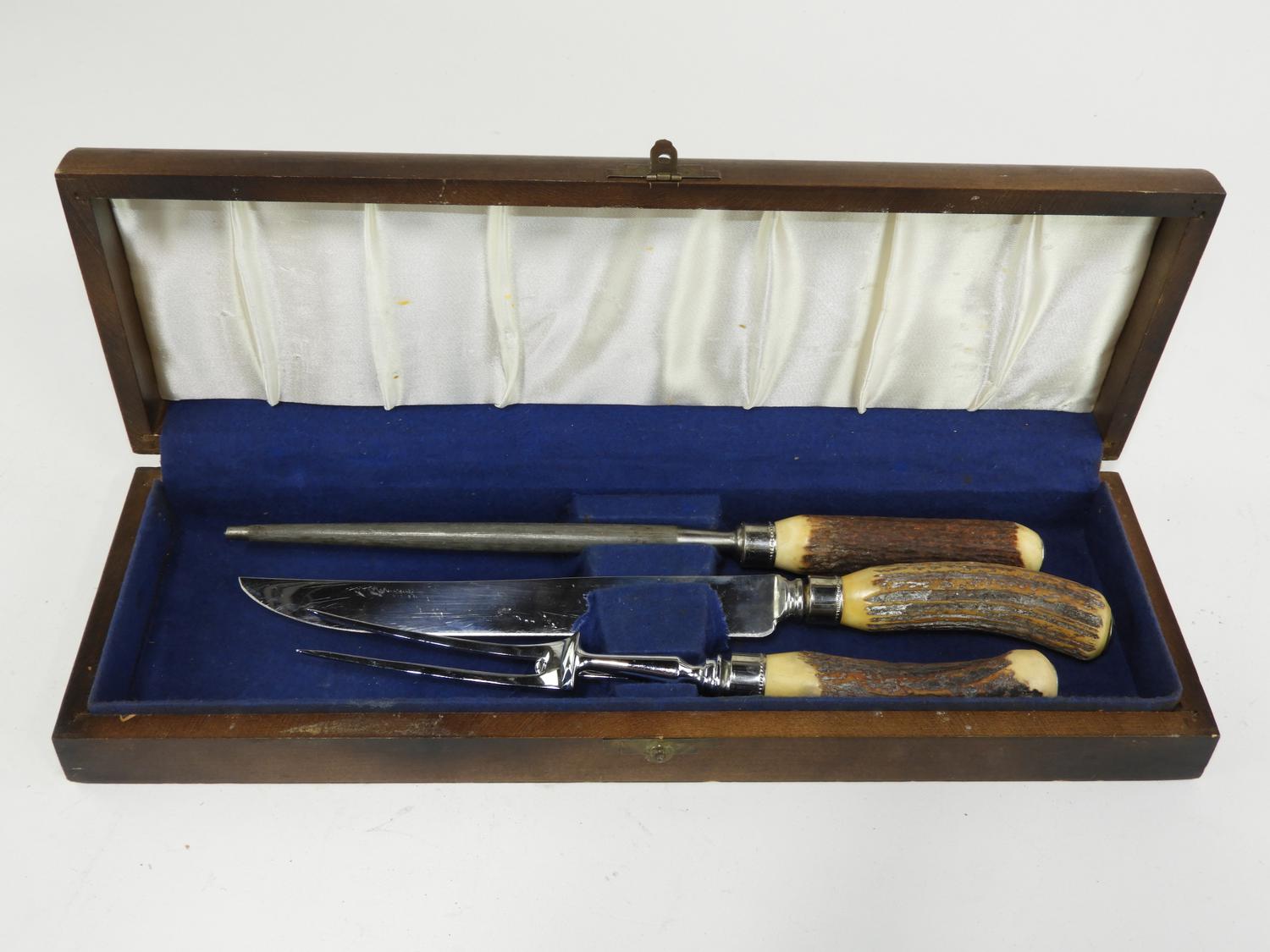 cased stag horn handled carving set