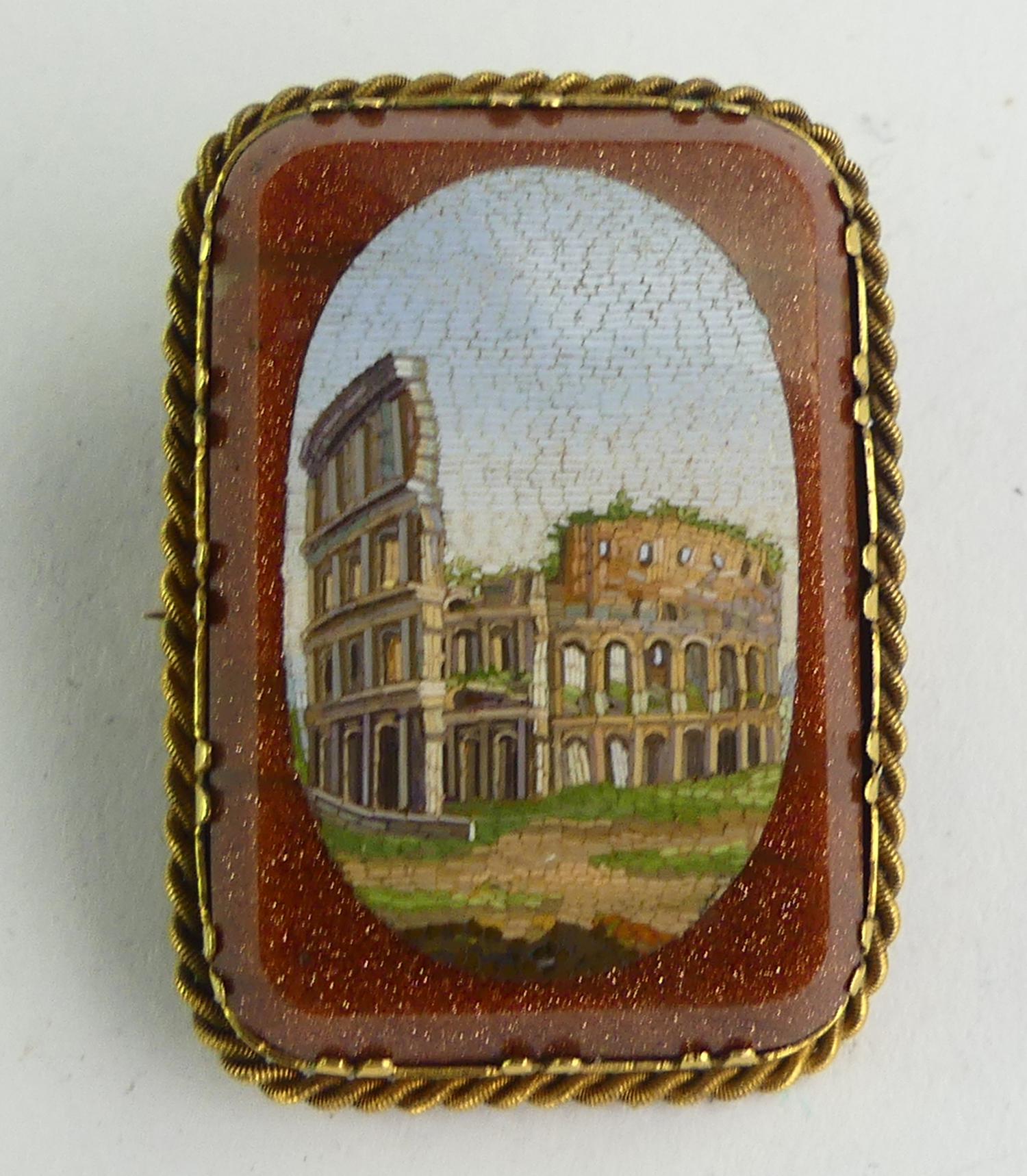 victorian goldstone roman colosseum micro mosaic brooch