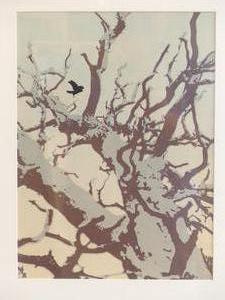 unsigned screenprint, 15" x 11", "garry oak with raven"