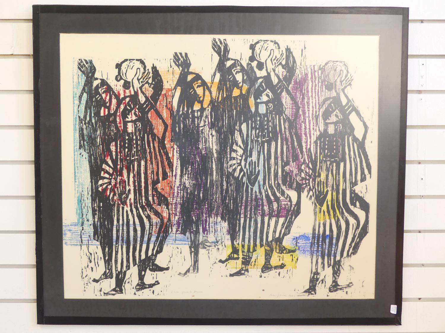 pnina granirer (b.1935), woodcut in colours #6/20, dated 1963, 22" x 26", "yeminite te ..."