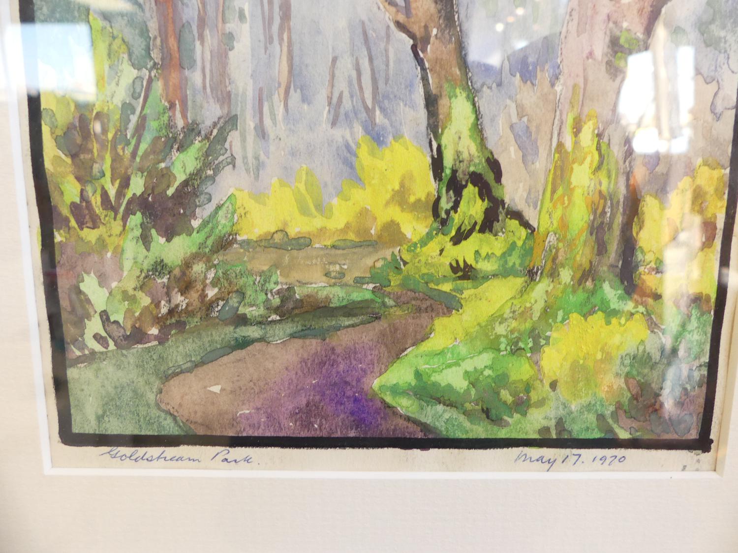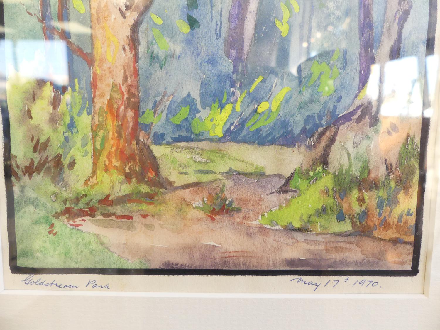 pair of reginald l. harvey (1888-1973), watercolours, 7 1/2" x 5 1/2", "goldstream park - may 17th 1970"