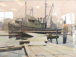 bearing initials eko, watercolour, 9" x 11 1/2", "west coast fishing boats"