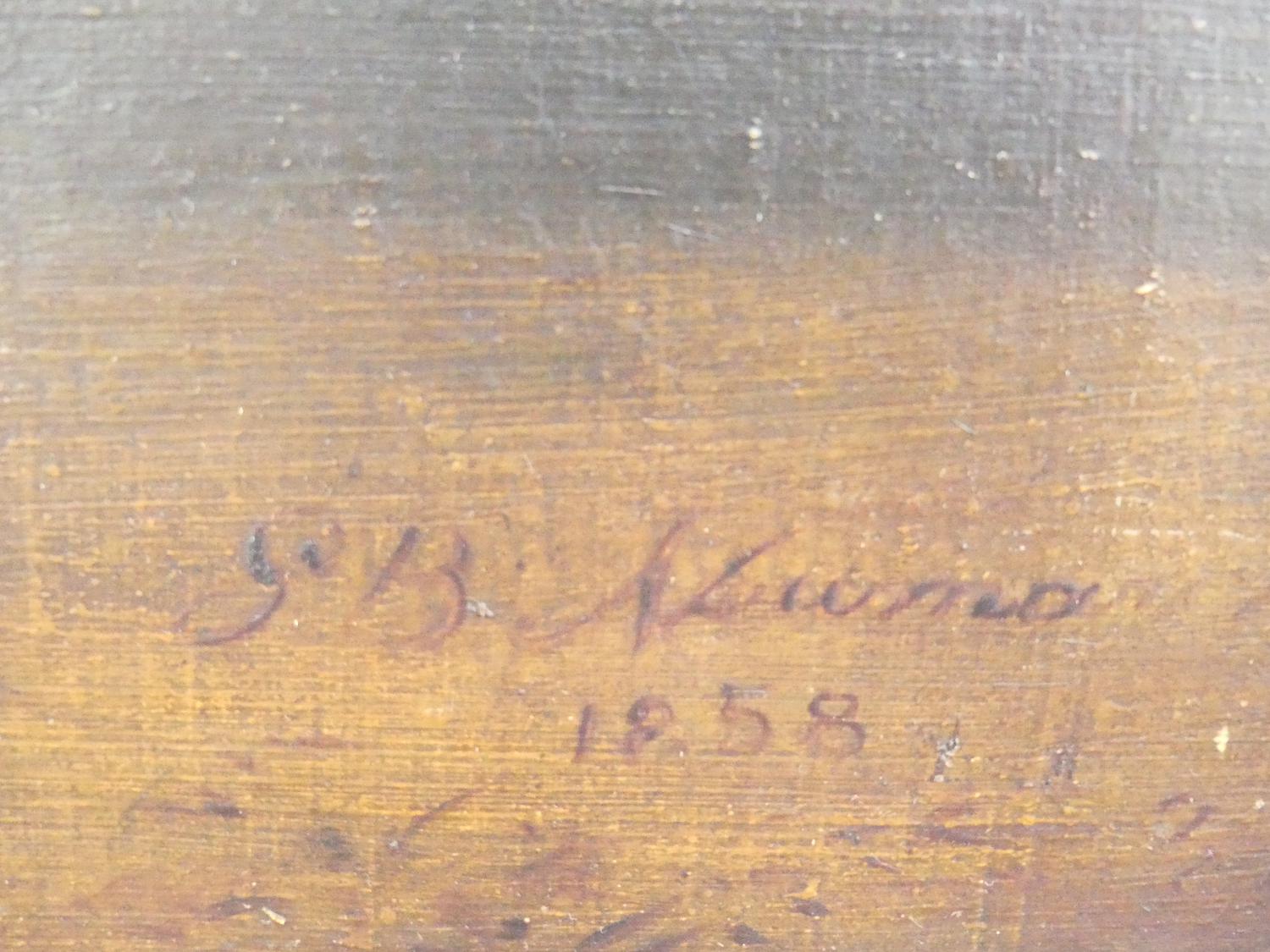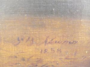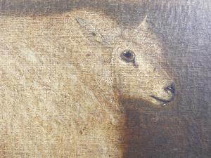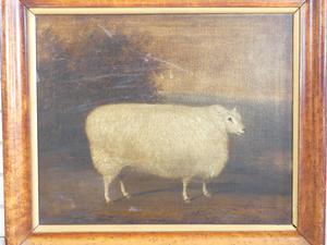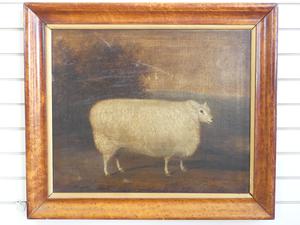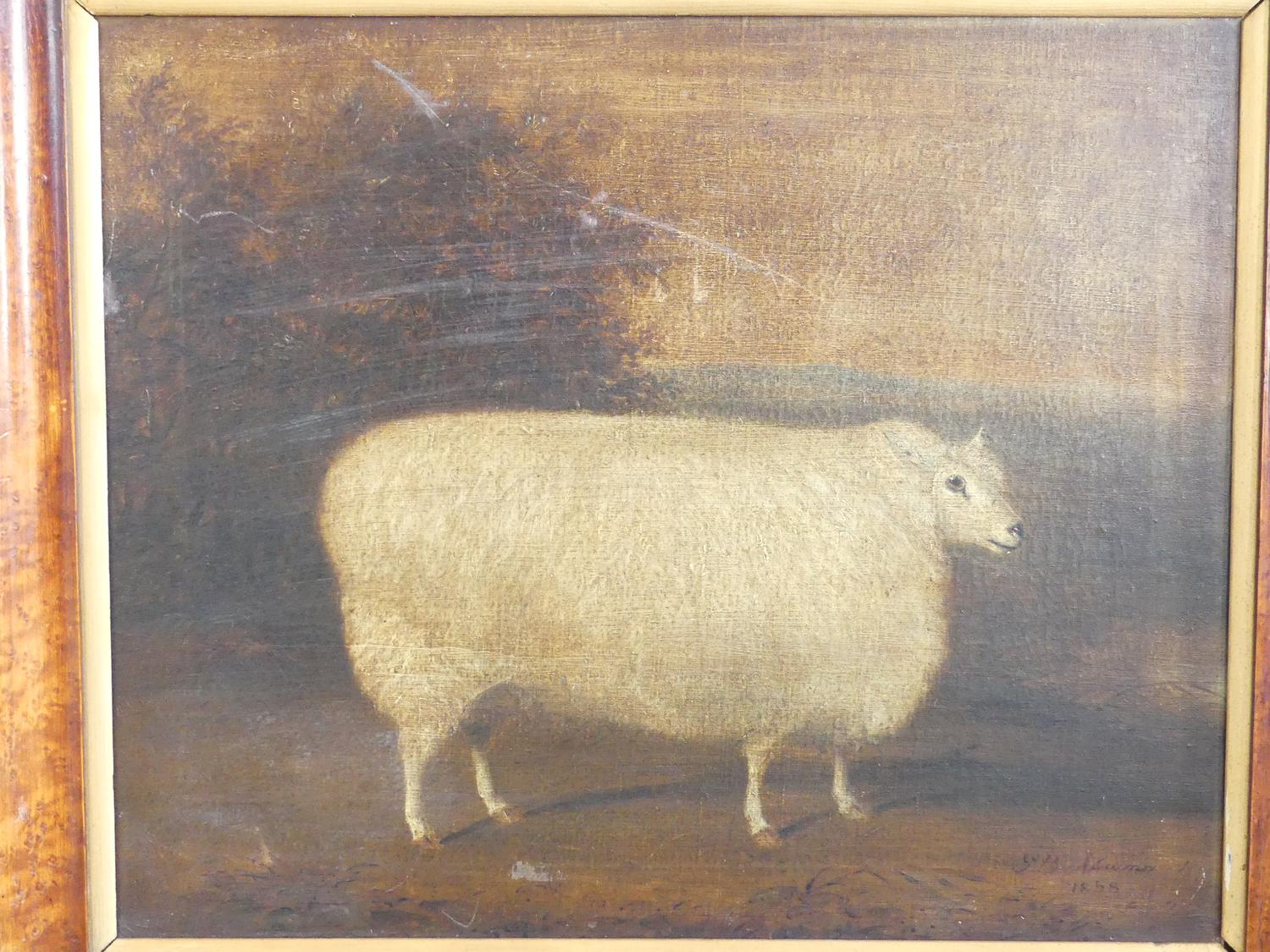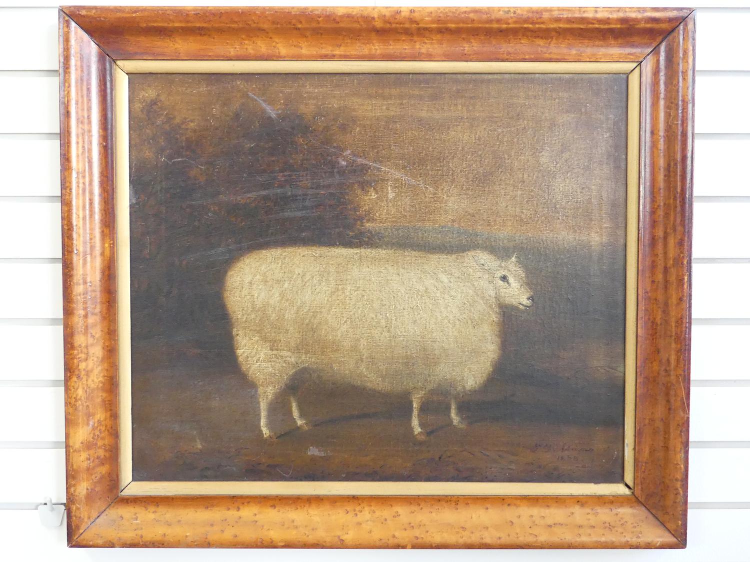 g.b.munro, oil on canvas dated 1858, 20" x 24", "champion sheep", in an birds-eye-maple frame