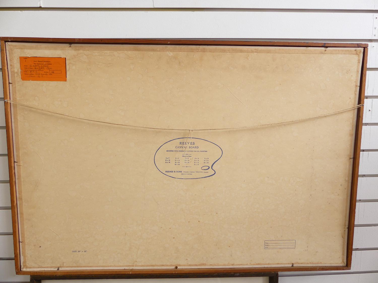 harry lane, dated 1963, oil on board, 24" x 36", "hagar qim", with the vancouver art gallery 32nd annual exhibition label