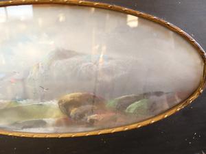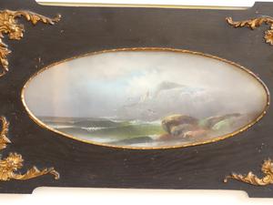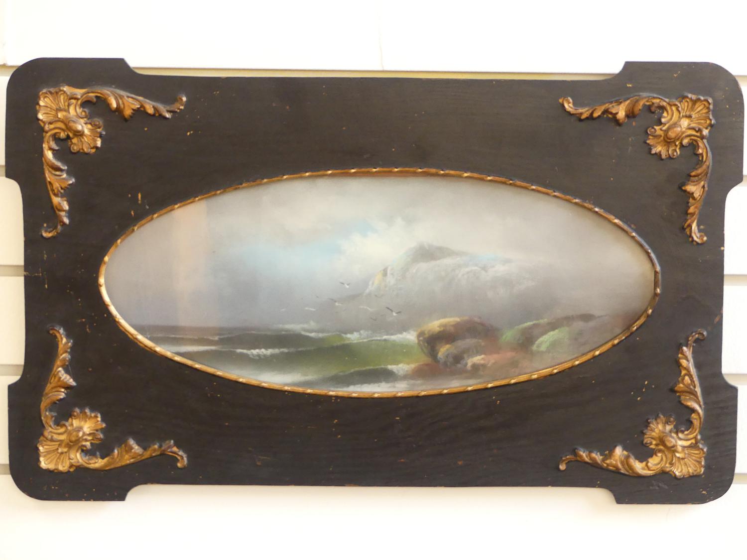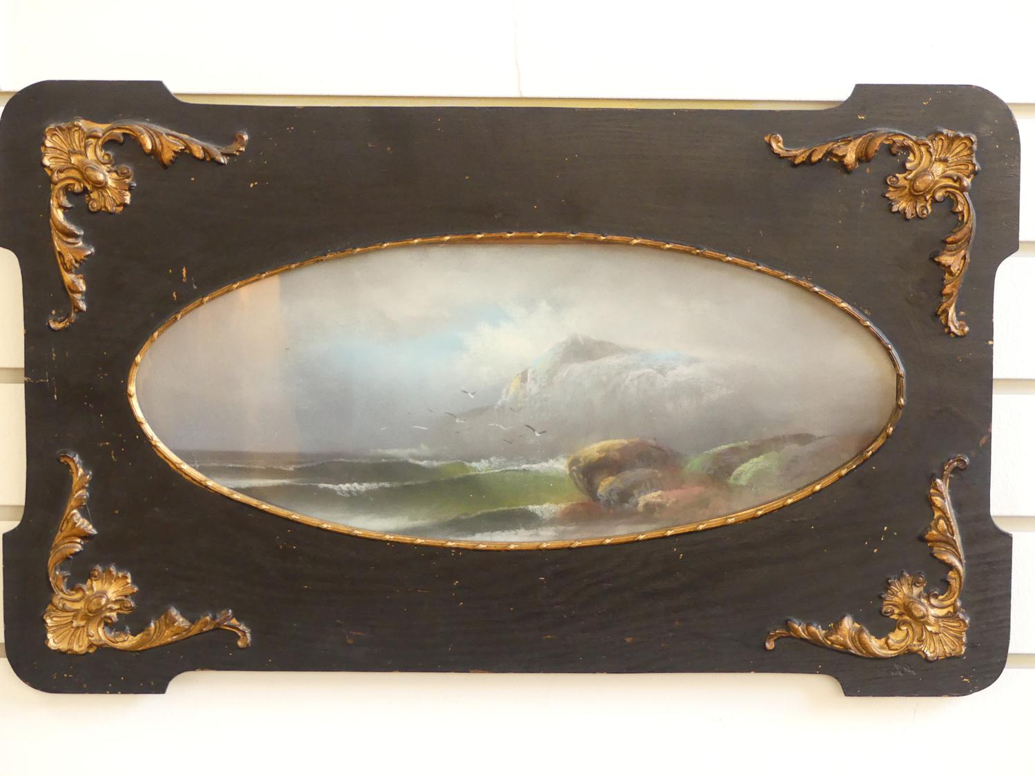 maisie wride (1892-1973), oval pastel, 7" x 16", "crashing surf"