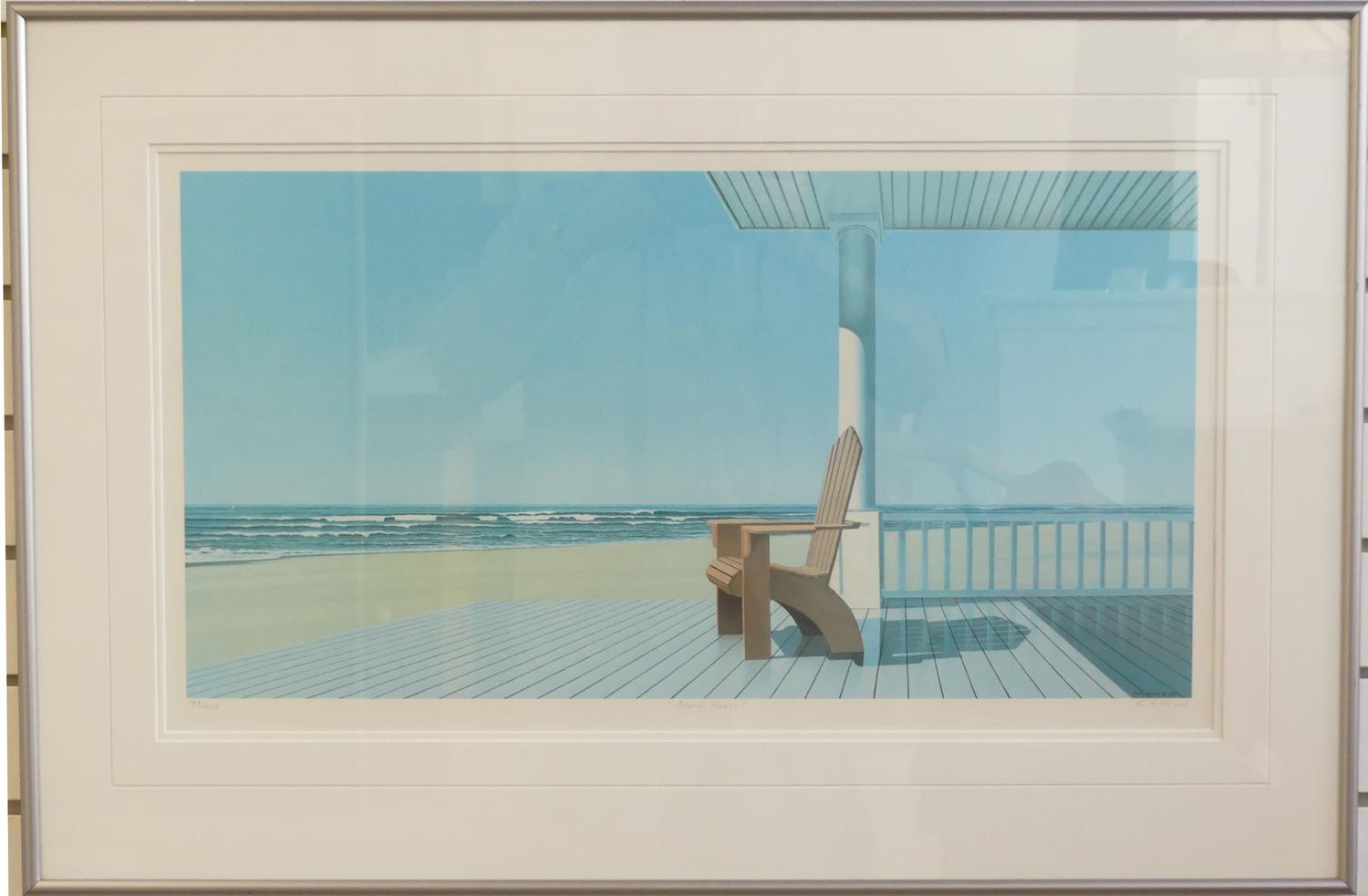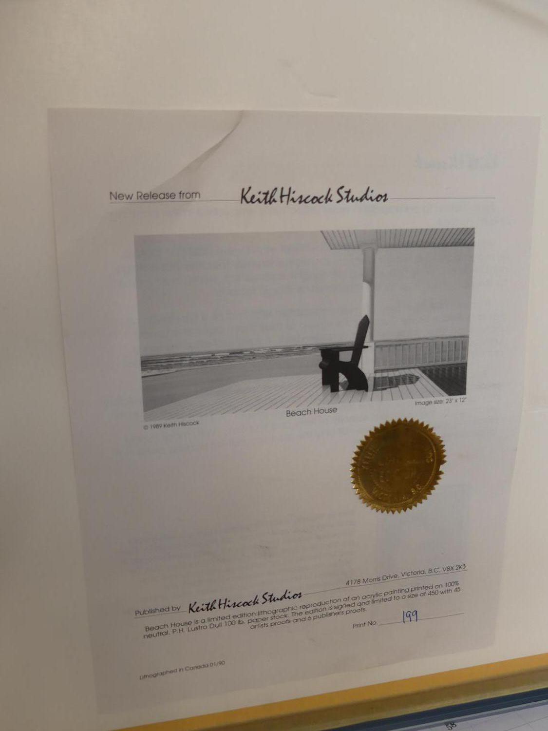 keith hiscock (b.1951), limited edition lithograph #199/450, 13" x 24", "beach house"