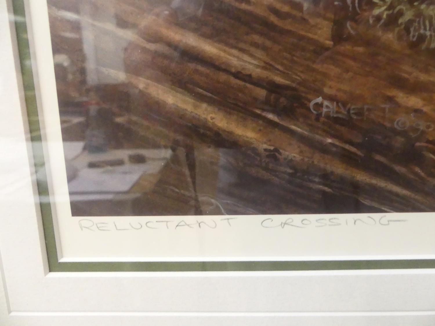 lisa calvert, limited edition lithograph #146/865, 20" x 30", "reluctant crossing"