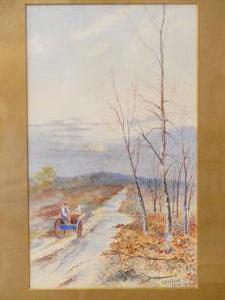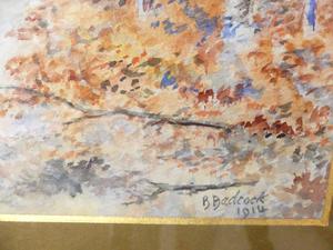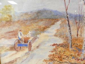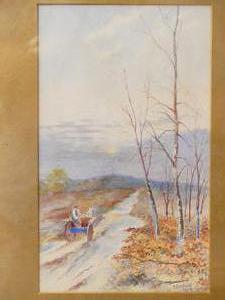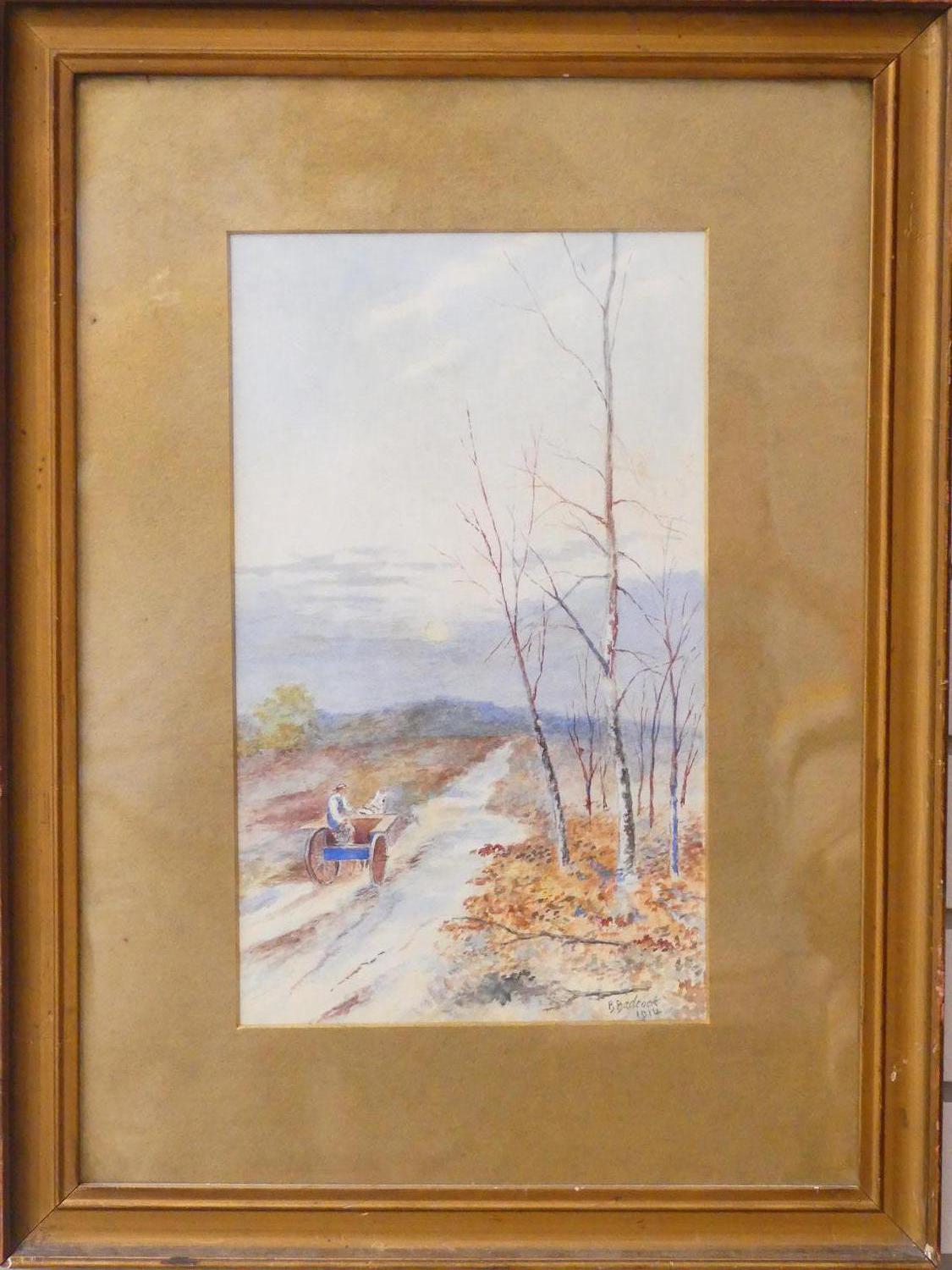 b. badcock, d.1914, watercolour, 13 1/2" x 8", "road to town"