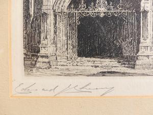 edward cherry (1886-1960), etching, 6" x 4", "gothic interior door"