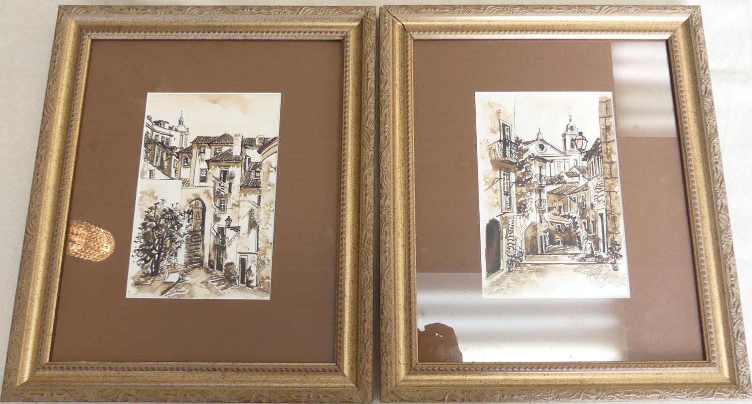 pedro robert, dated 2001, pair of watercolours, 8" x 5", "street scenes"