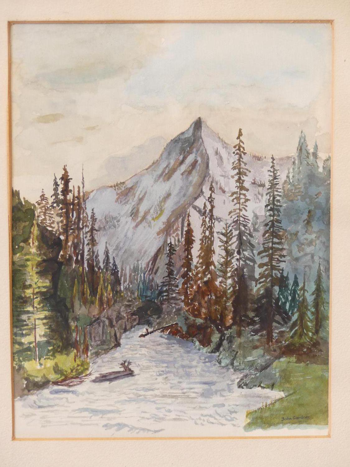 john gardner, watercolour, 8 1/2" x 6 1/2", "mountain landscape"