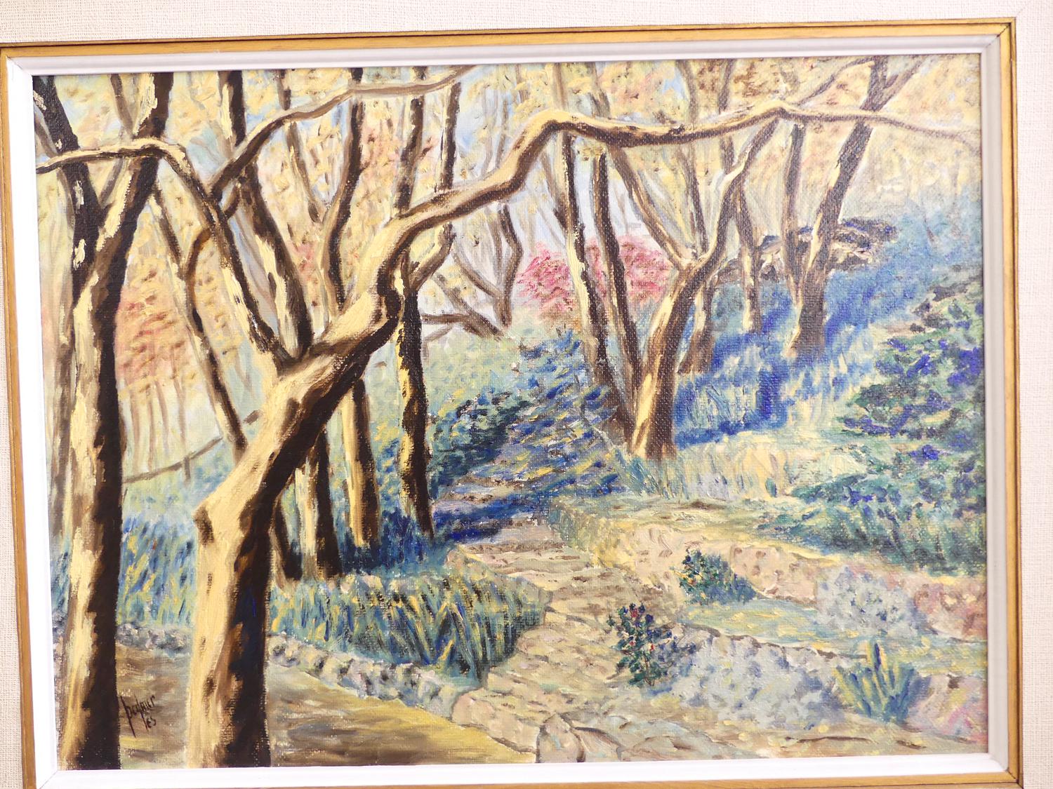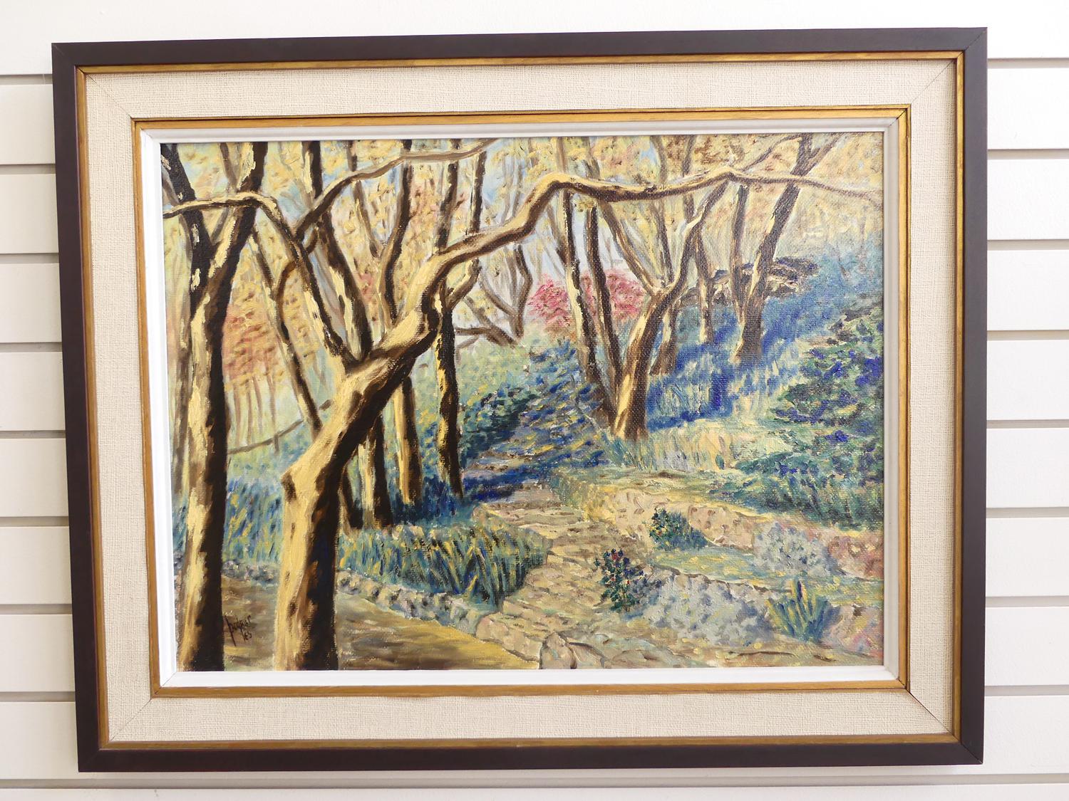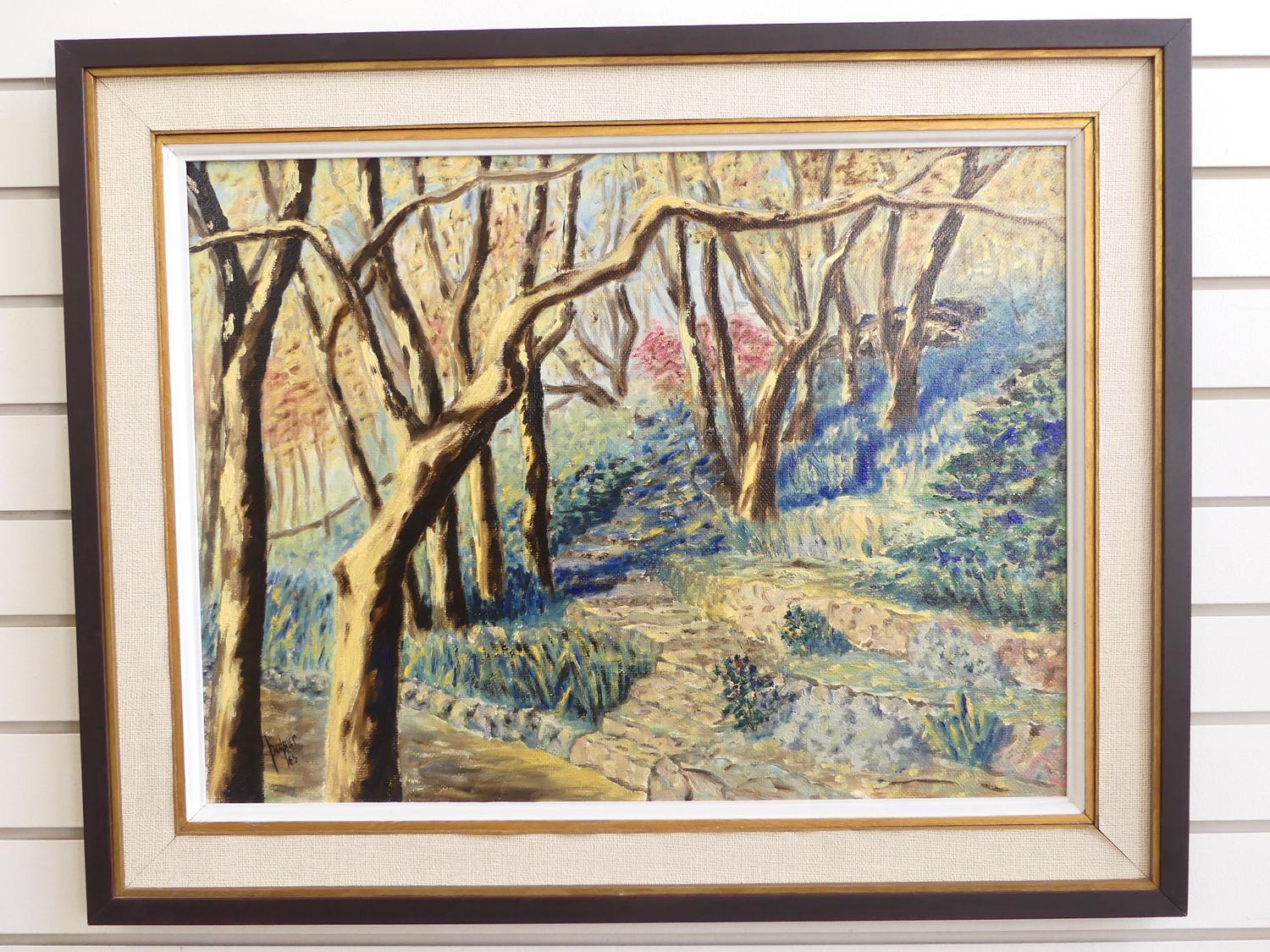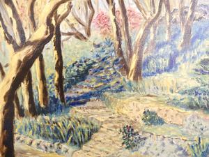 indistinctly signed oil on board, 18" x 24", "garden scene"