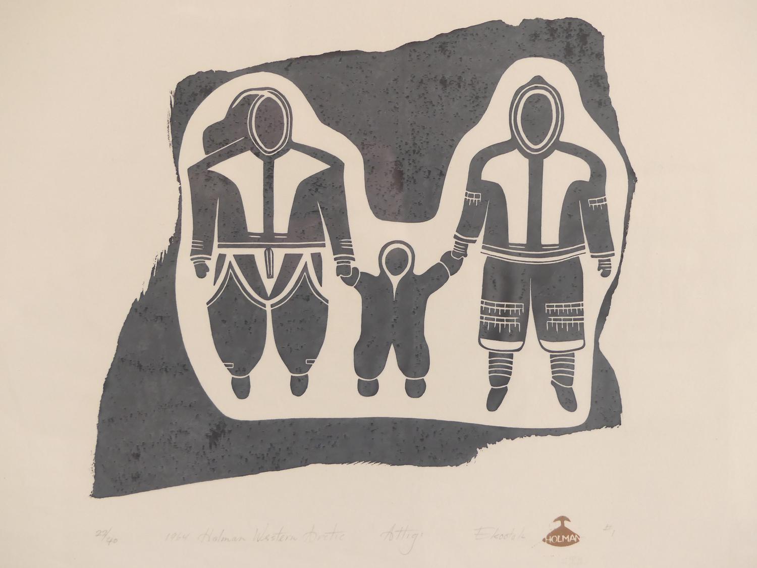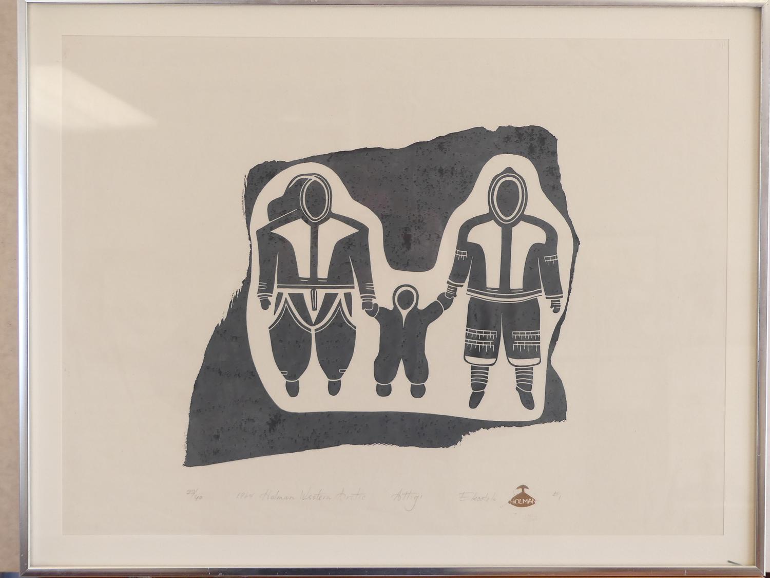 victor ekootak (1916-1965), stonecut #22/40, 16" x 21", "attigi (1969)"