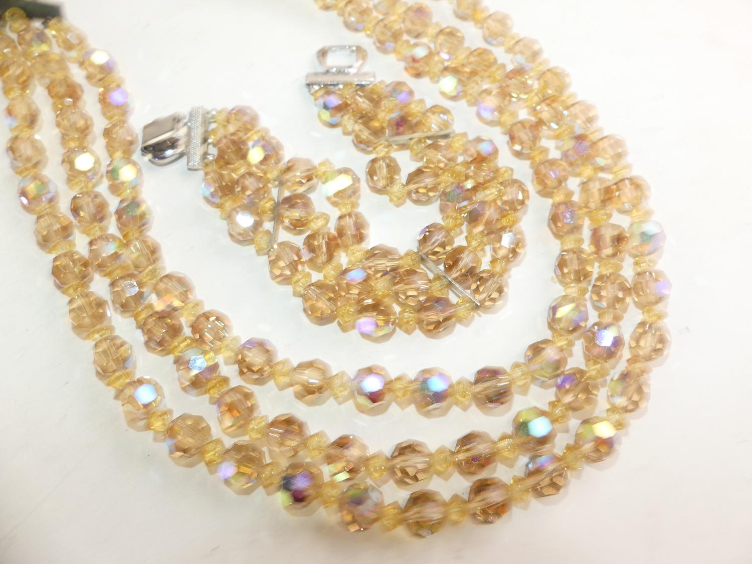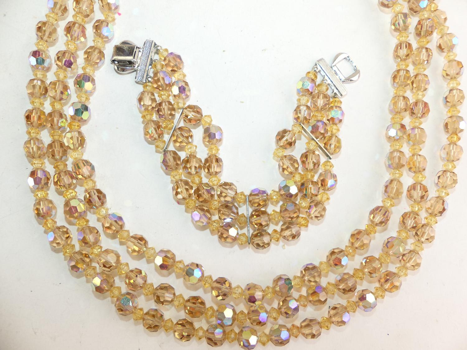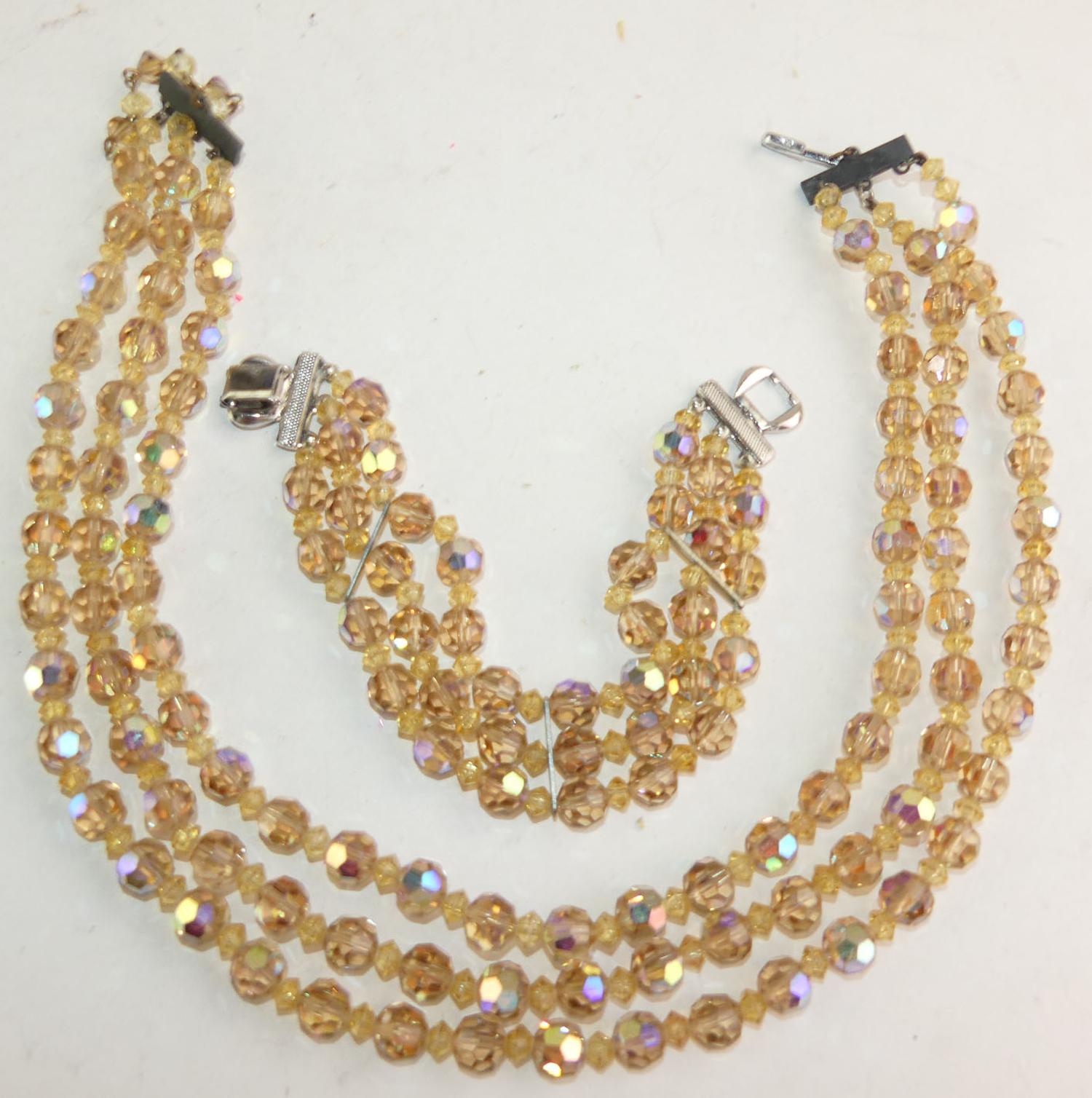 austrian crystal necklace and bracelet, 17", 7 1/4", 1950s