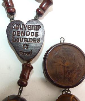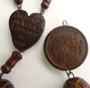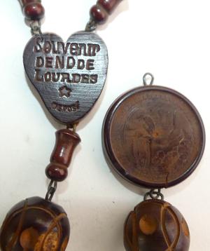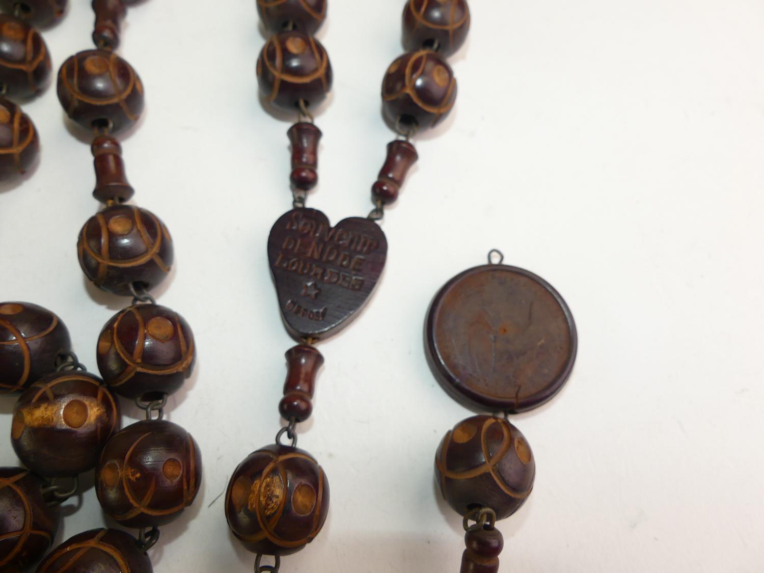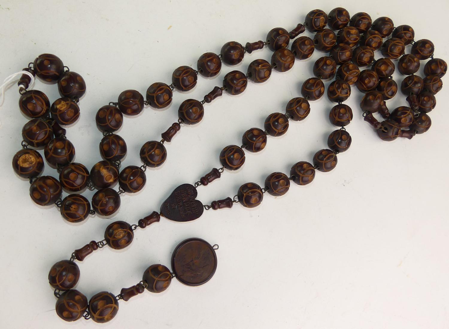 french carved nut rosary beads, 70" and 18" pendant