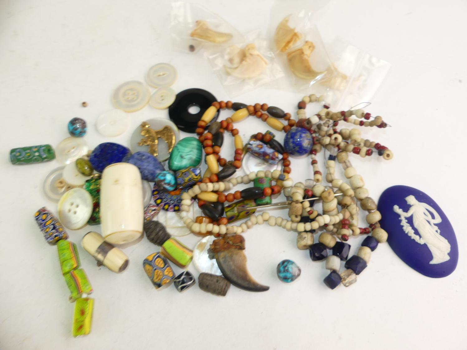 lot of misc beads, teeth, claws, buttons etc