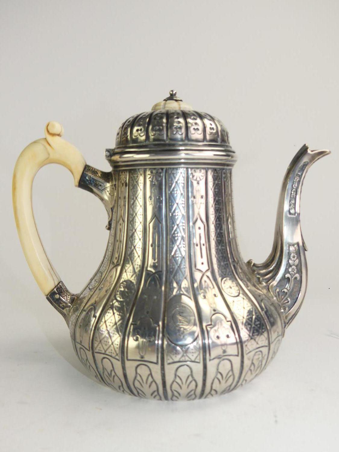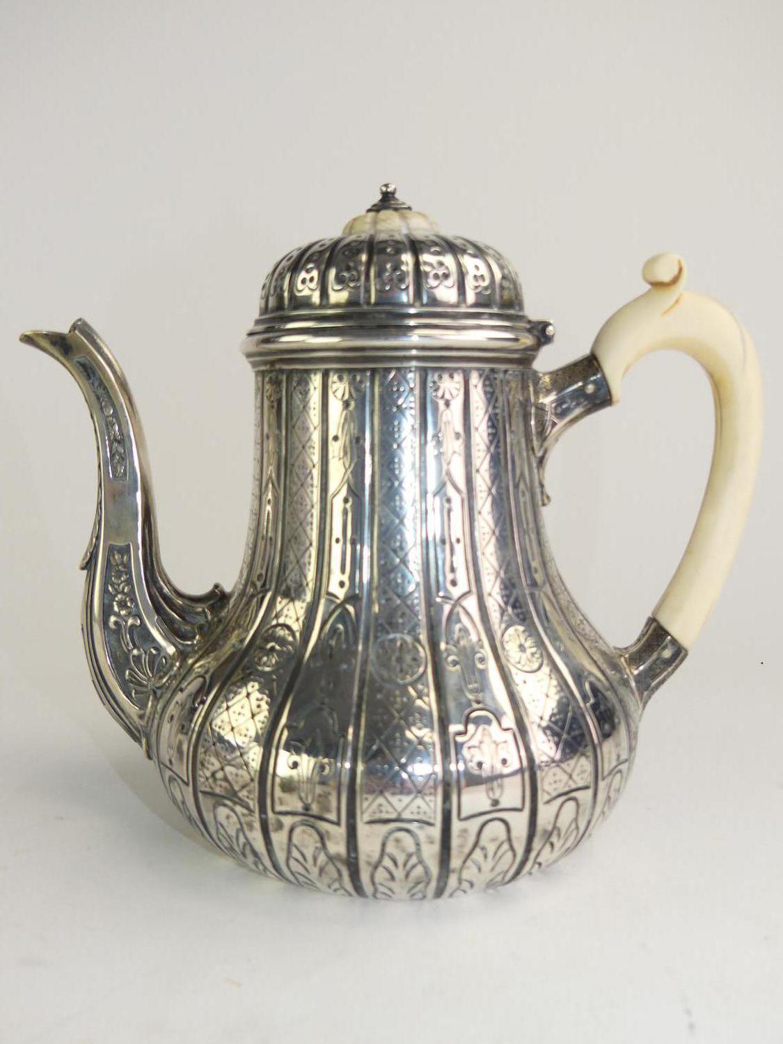 early victorian silver tea pot, robert garrard ii, panton street, london 1856, ht. 7", 723 total grams