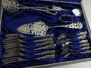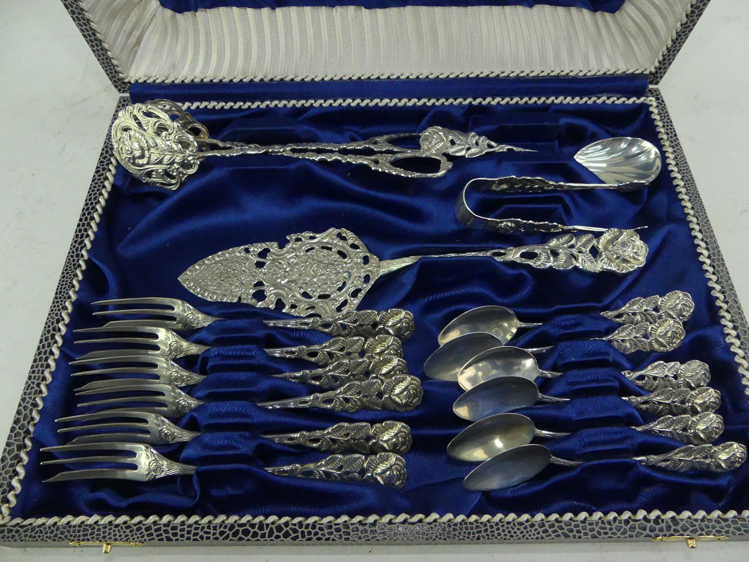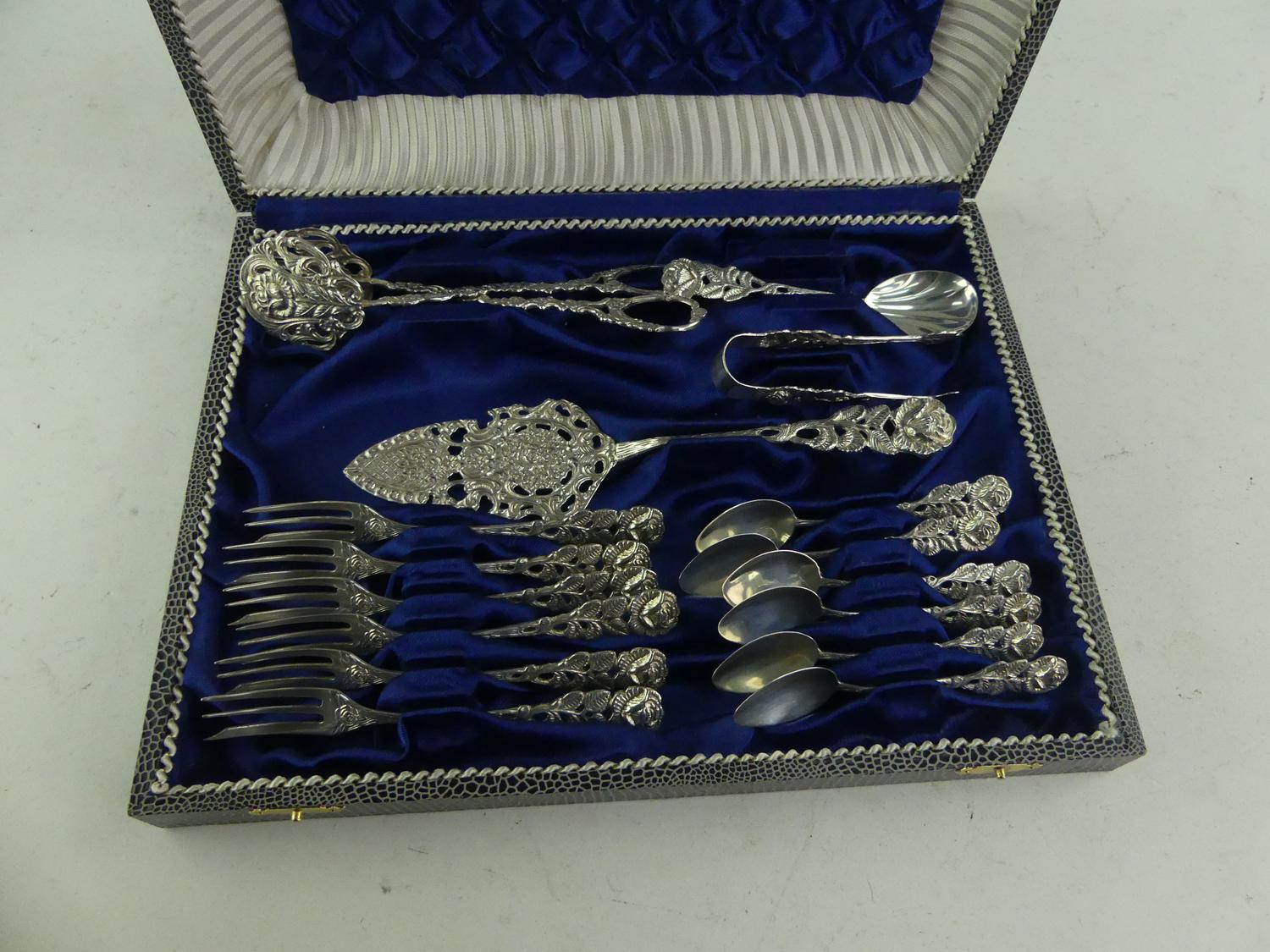 cased antiko .800 silver tea/dessert service, german mid 20th century, 254 grams