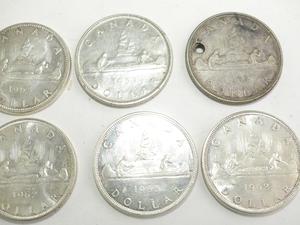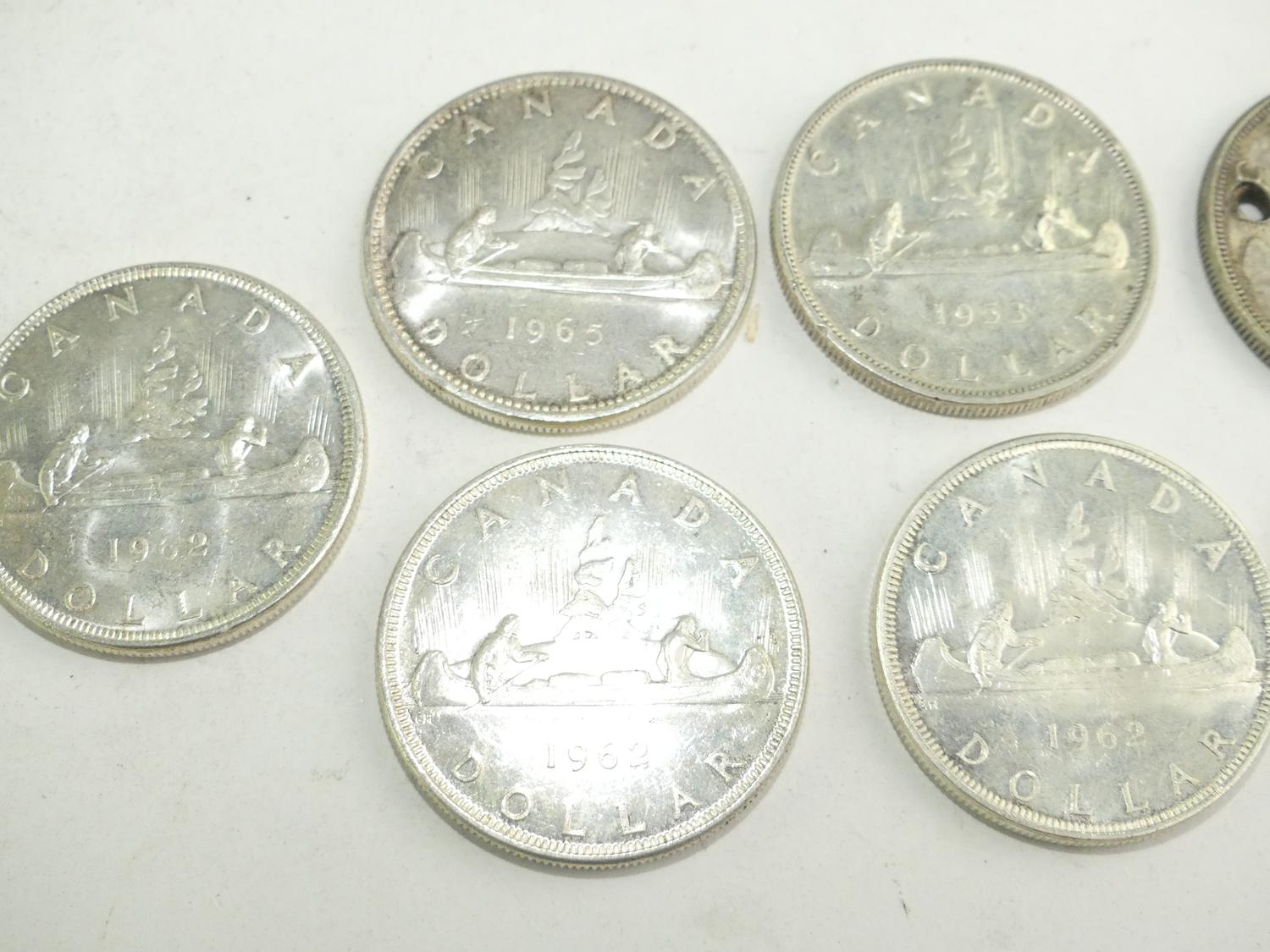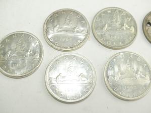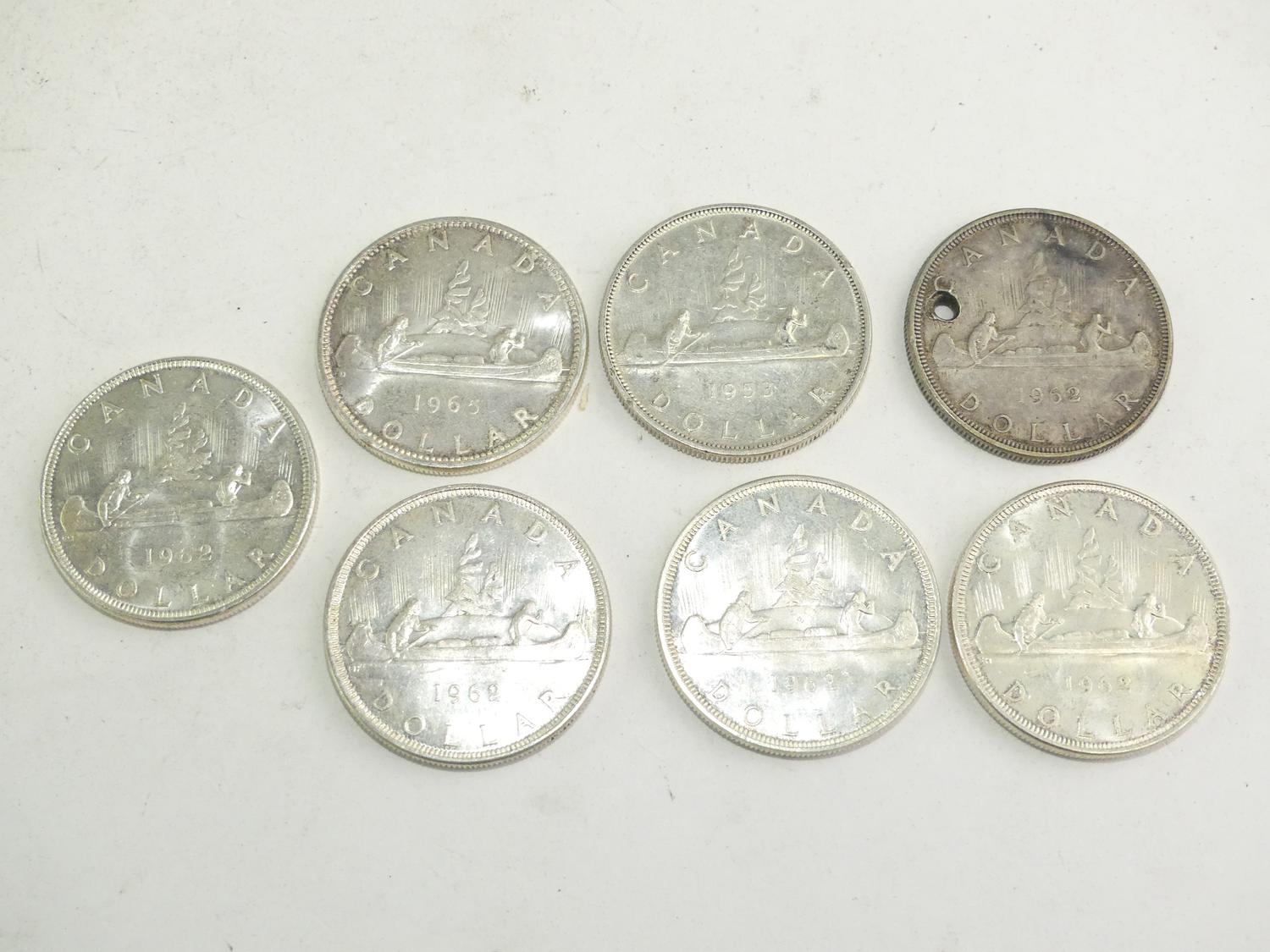 seven canadian silver dollars, 1953, 1962x5, 1965