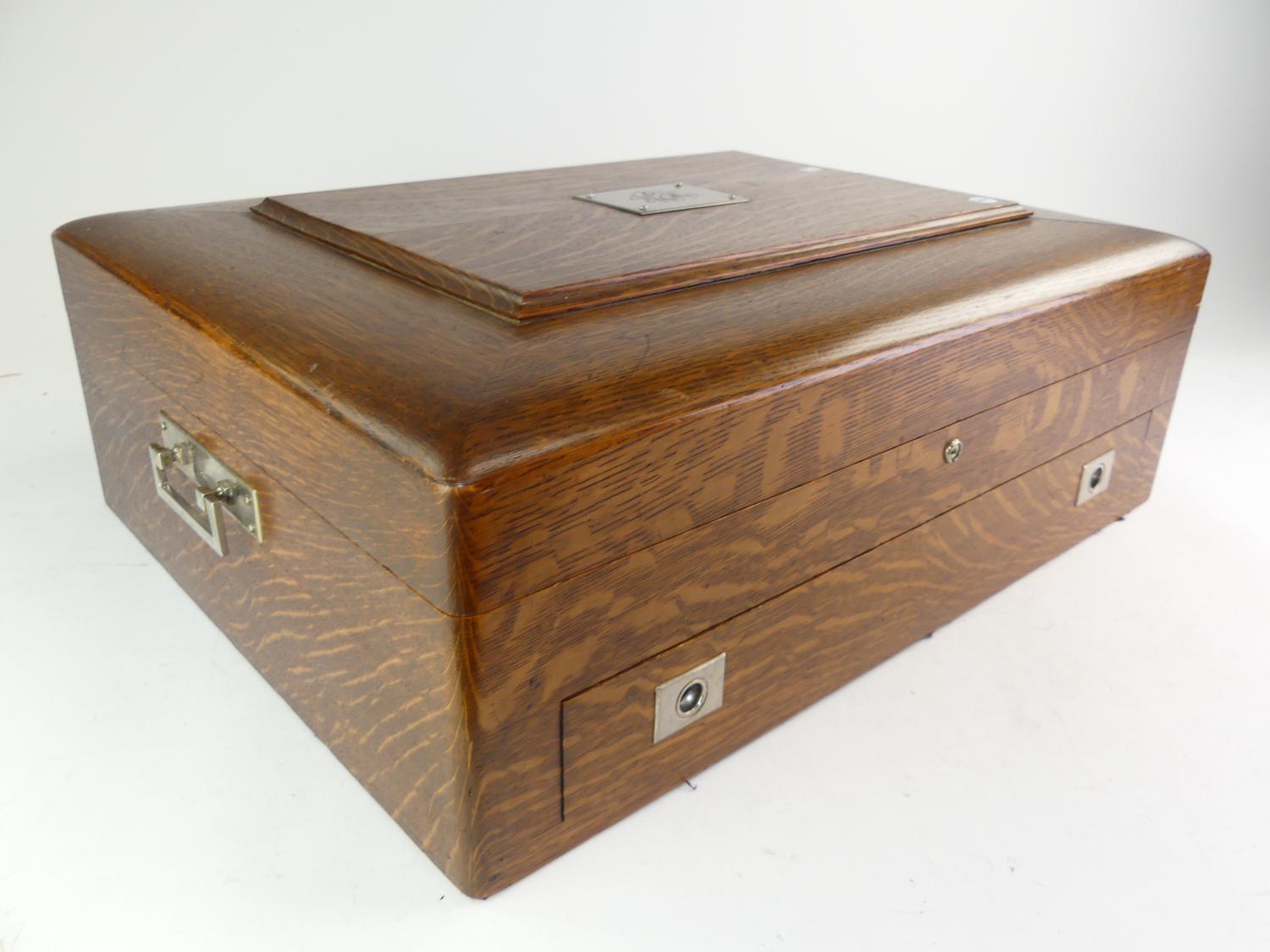 early 20th century large oak flatware canteen, 9" x 25" x 19 1/2"