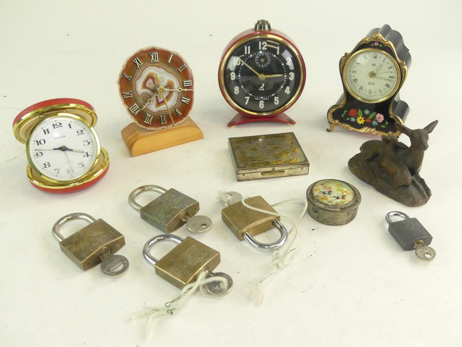 lot of clocks and desk items