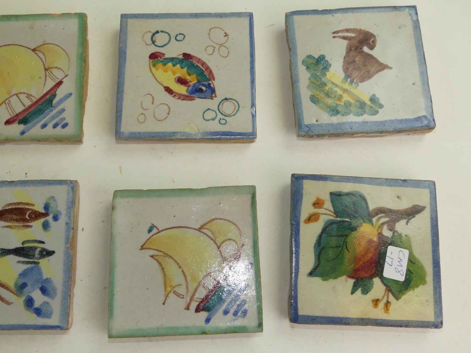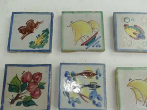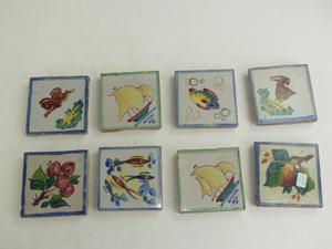 lot of 8 glazed tiles, 3 1/2" x 3 1/2"