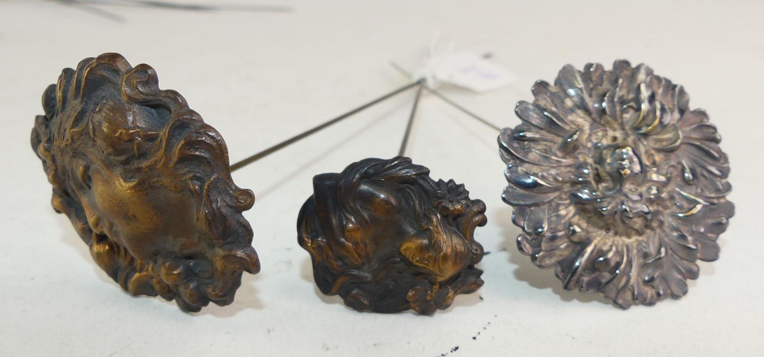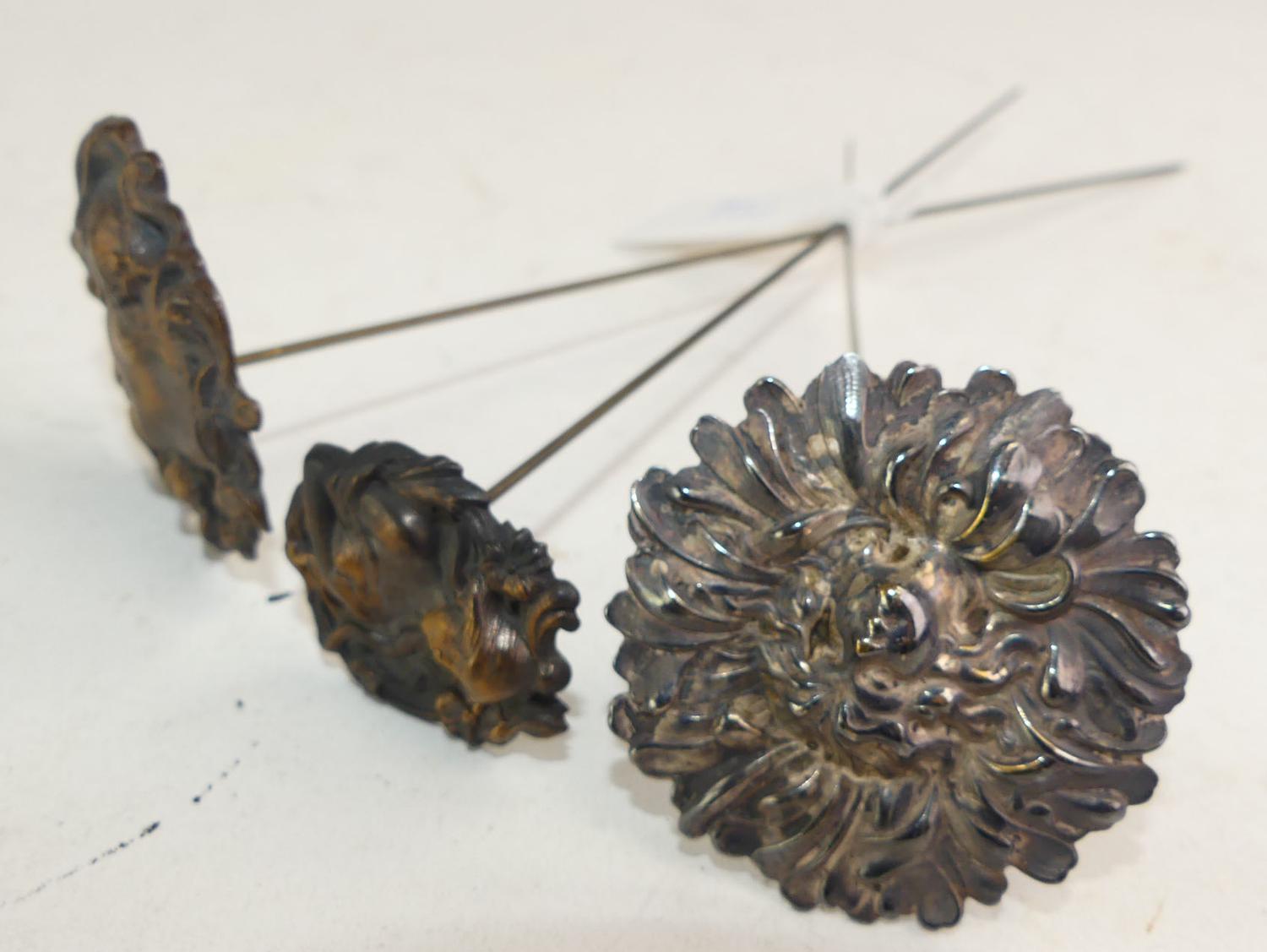 3 art nouveau hatpins, 9" and smaller