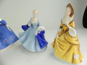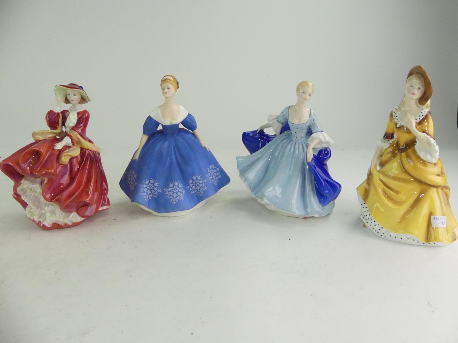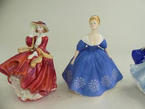 lot of four royal doulton figurines, "top o' the hill", "nina", "sandra" & "dulcie"