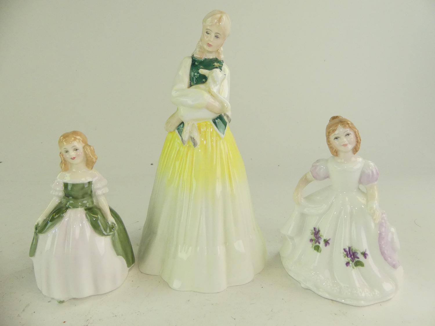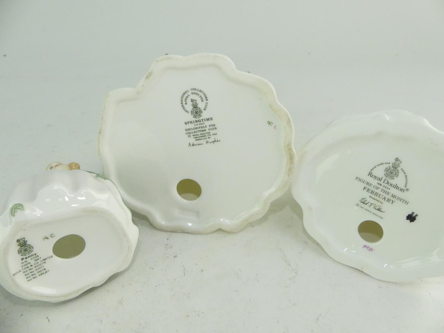 three royal doulton figurines "springtime", "penny" & "february"
