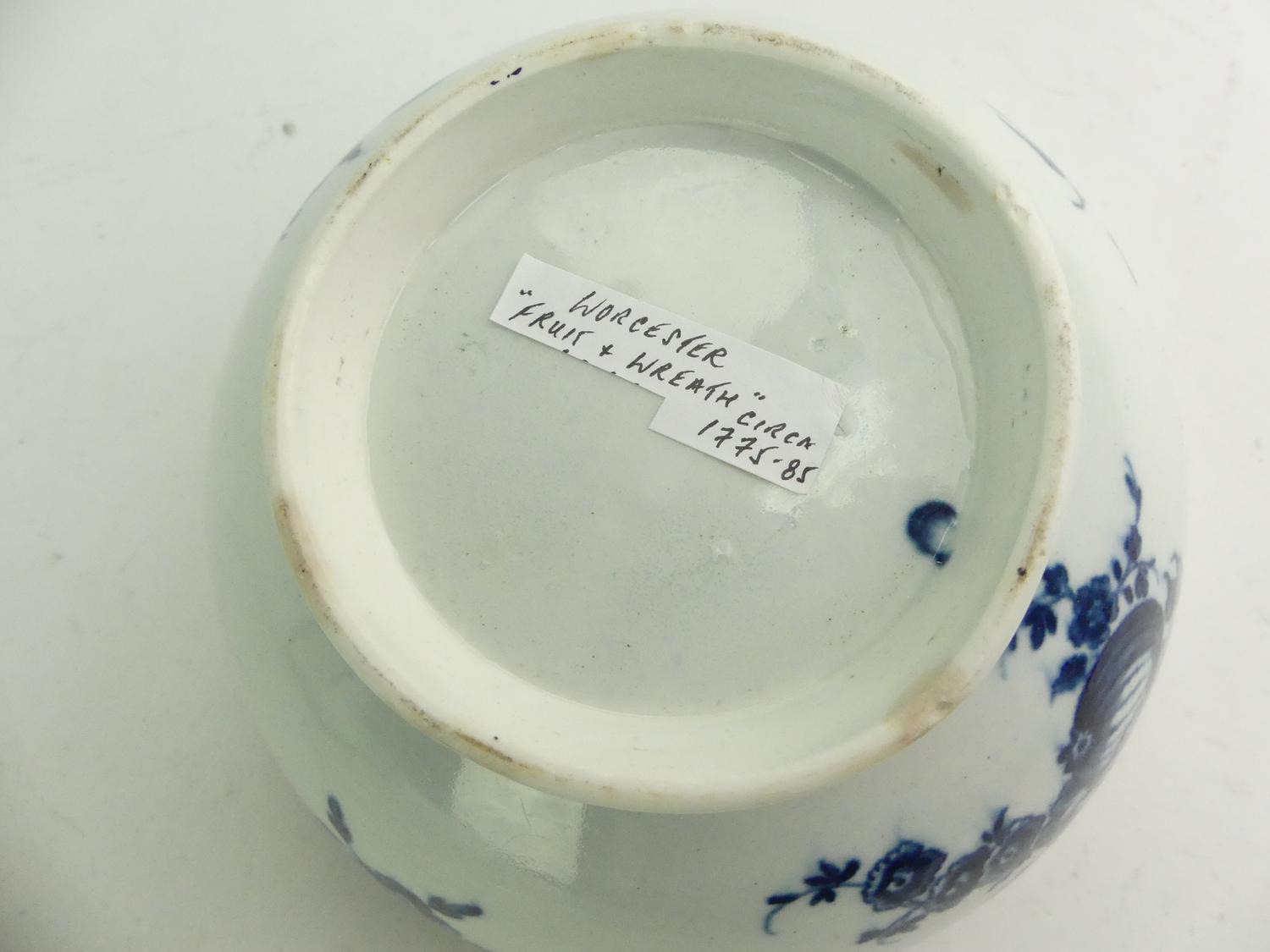 18th century worcester porcelain "fruit & wealth" pattern bowl, 3" x 6 1/4"