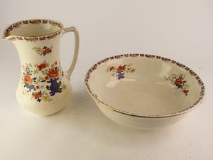 antique ironstone pitcher and basin, ht. 11 3/4"