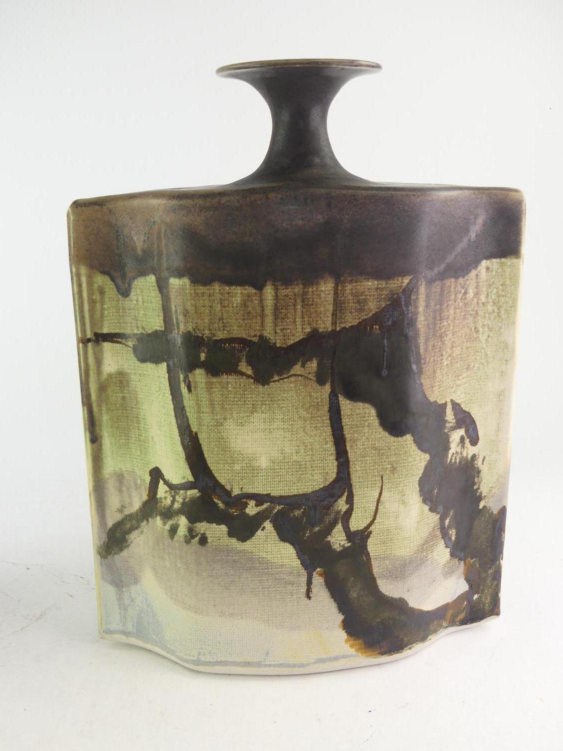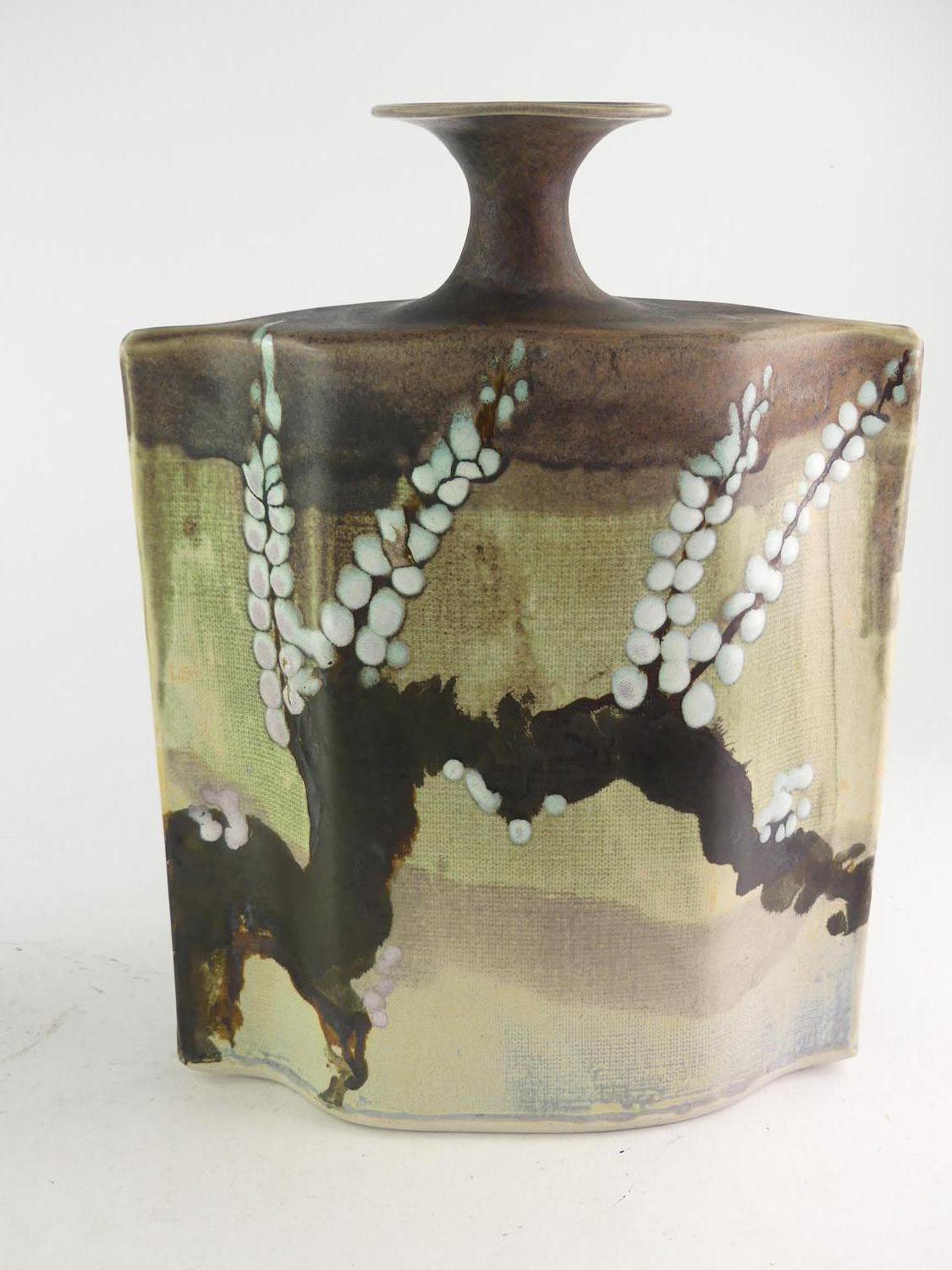 robin hopper art pottery vase, ht. 18 1/2", "cherry blossoms"