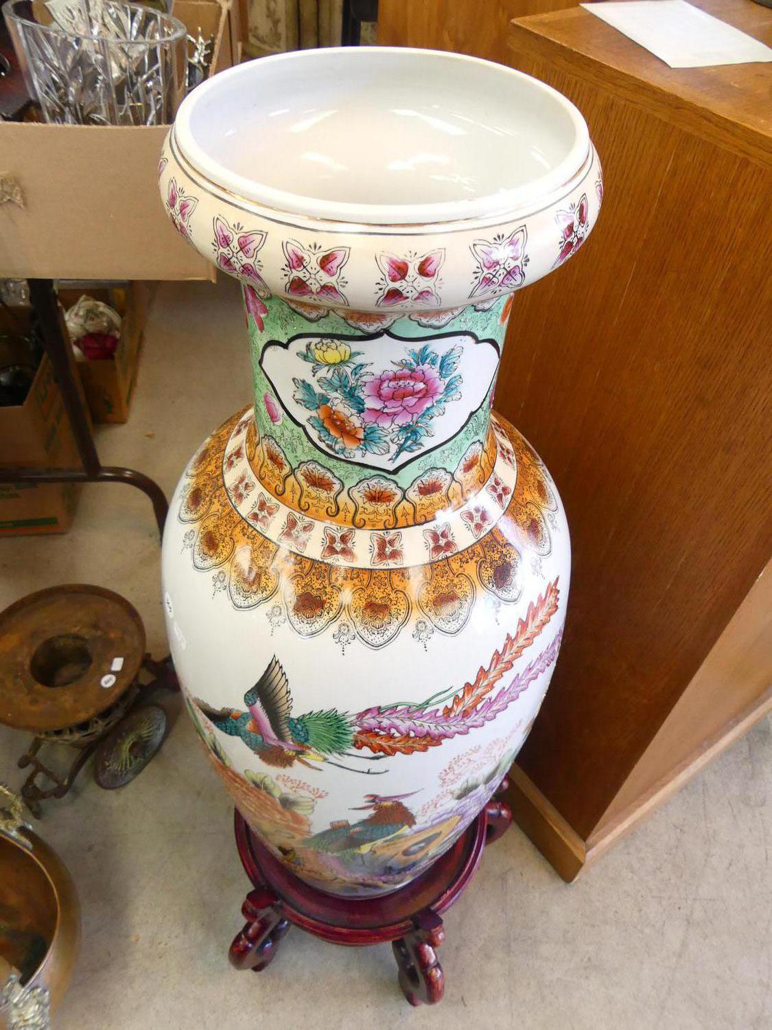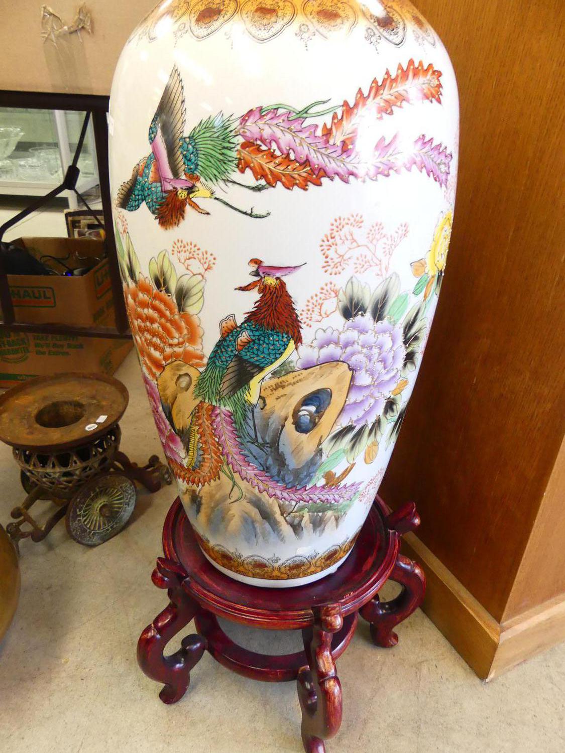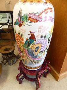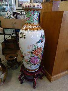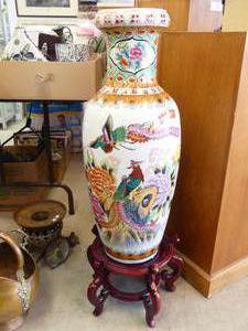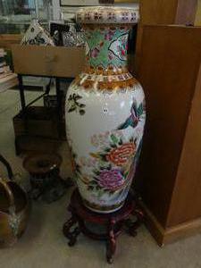 large decorative asian vase on stand