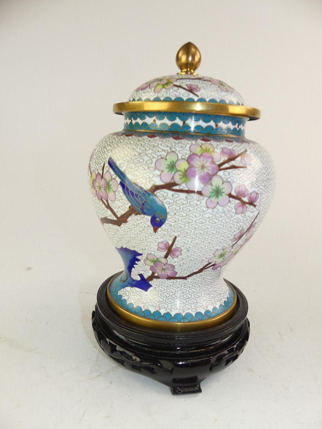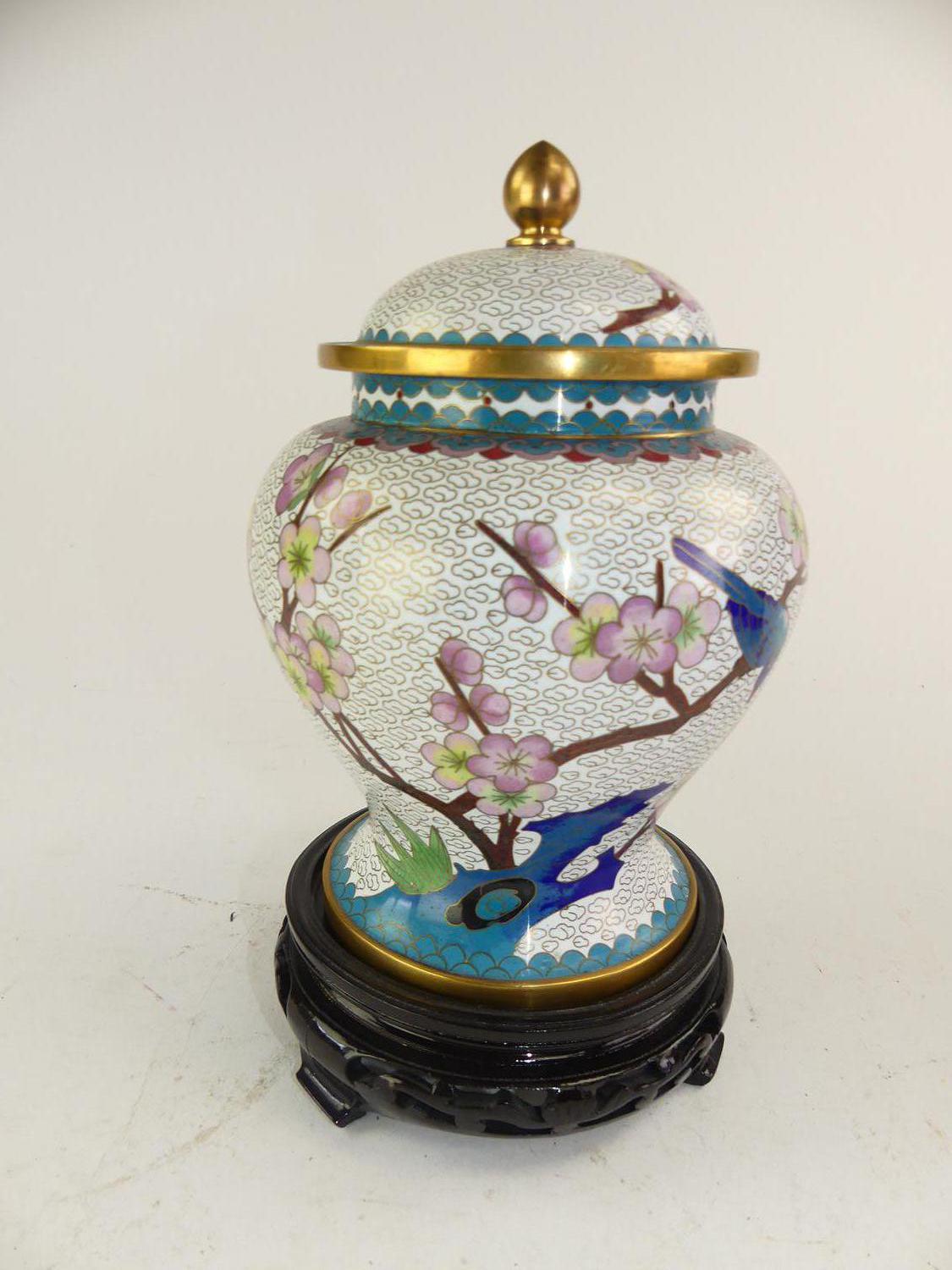 cloisonne enamel vase on stand, ht. 10 1/2"
