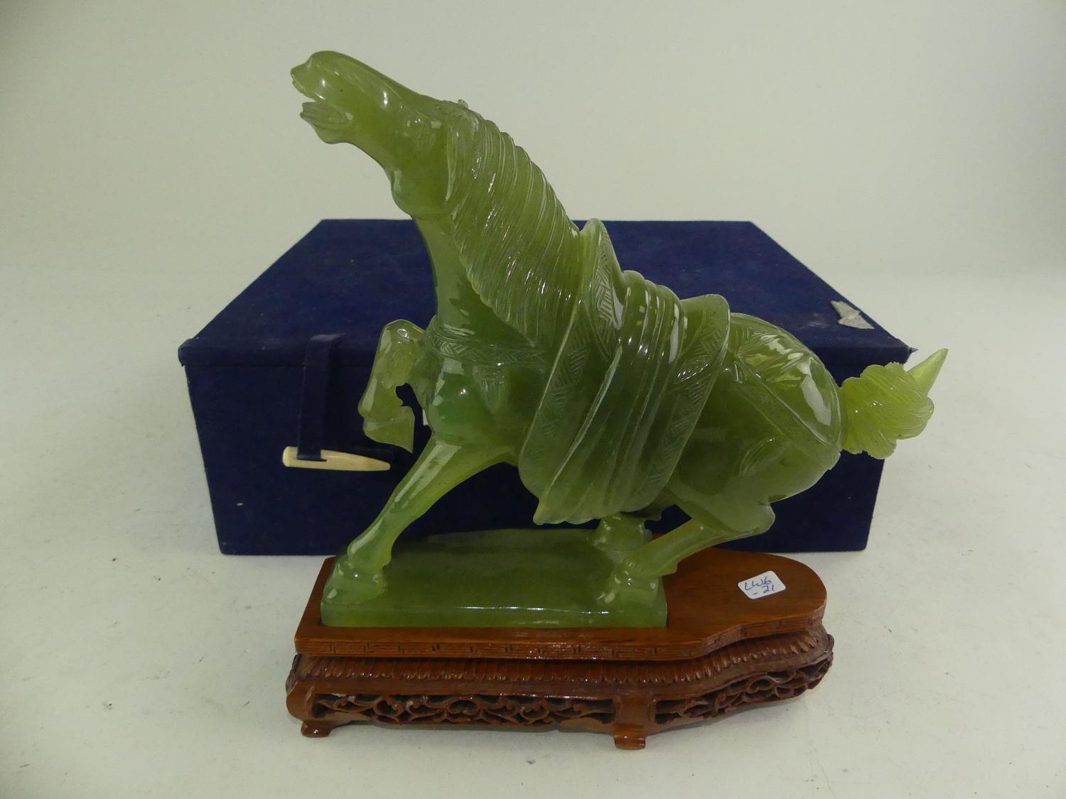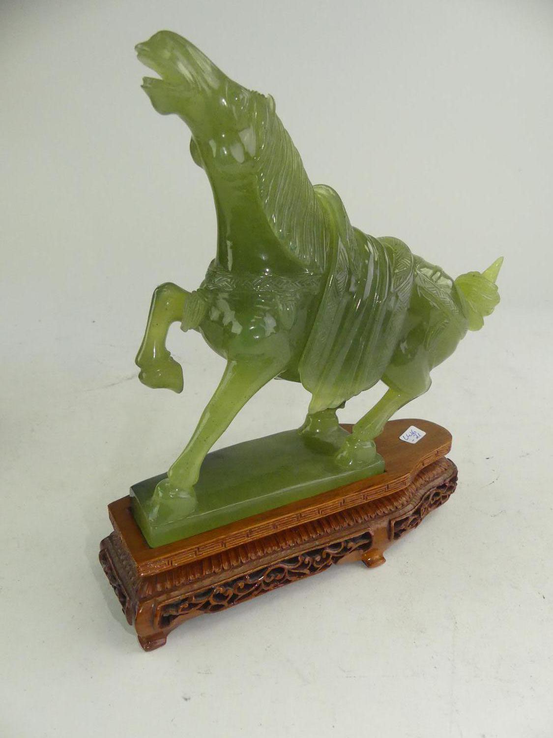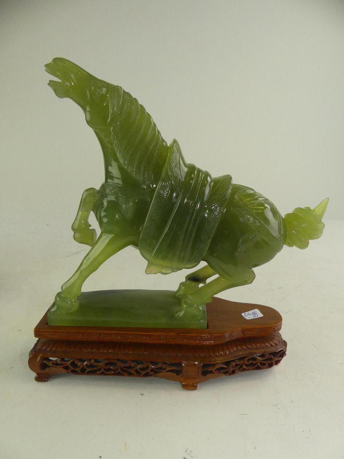 chinese carved jade prancing horse on stand