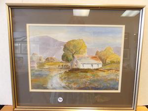 watercolour signed eldridge, 10" x 13", "farm scape"