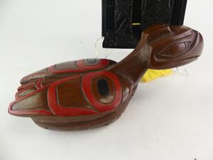 haida motif bridge counter with a raven box, 13 1/2" and smaller