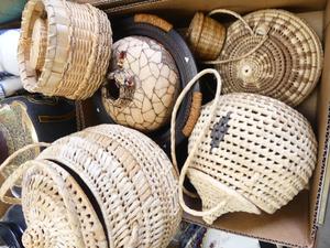lot of carved bowls, baskets, etc.