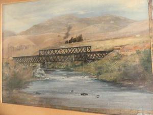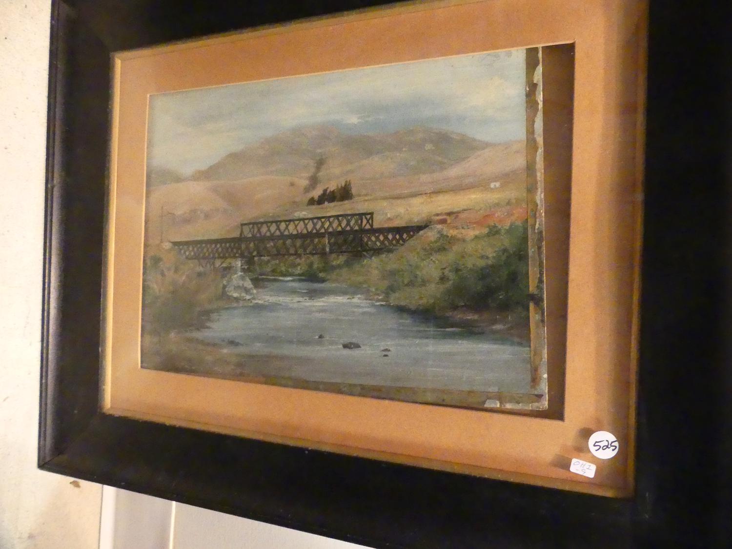 unsigned oil on board, "landscape with bridge"