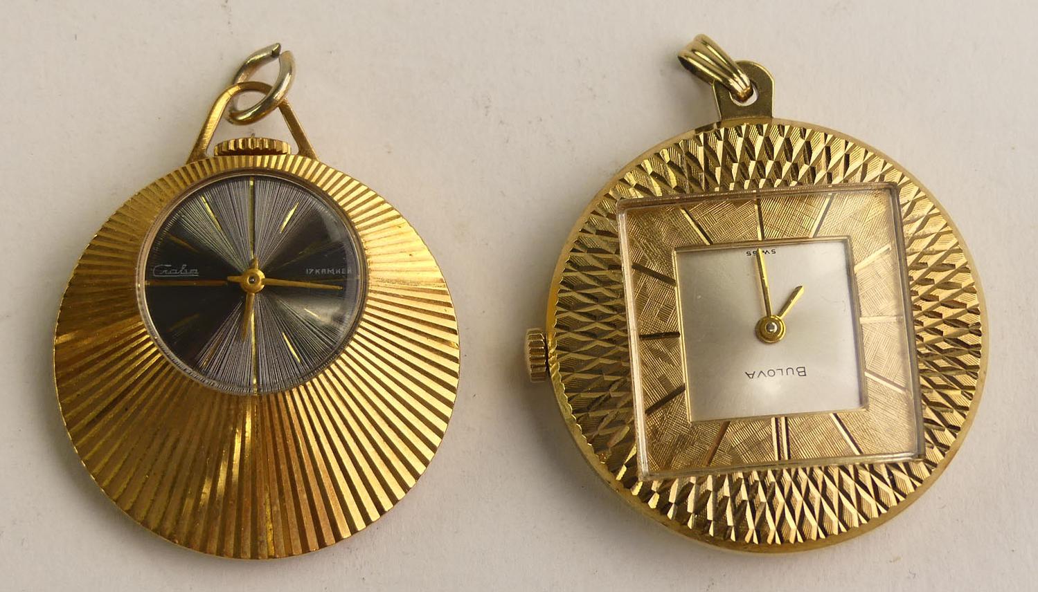 vintage bulova and another 1970s pendant watchs